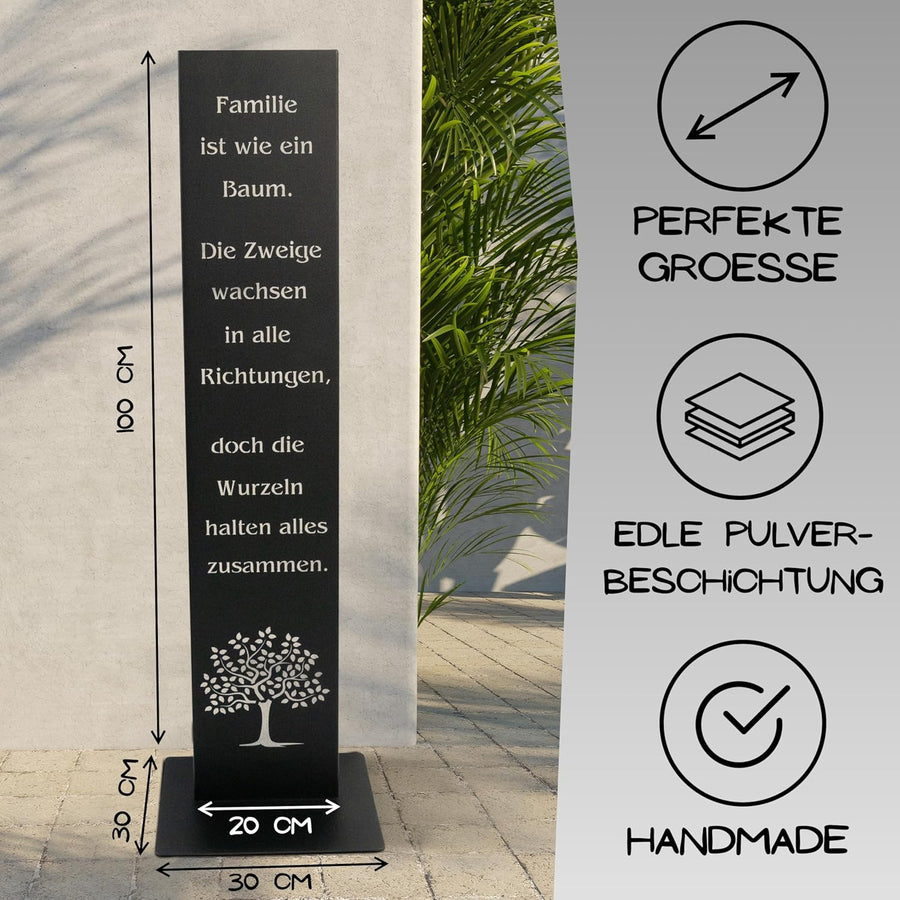 - 🌼 𝐆𝐑Ö𝐒𝐒𝐄 Dieses elegante Familien Spruch Deko Schild ist 100 cm hoch und steht stabil auf einer grosszügigen Bodenplatte mit 30 x 30 cm, perfekt für den Garten und als Zimmer Deko