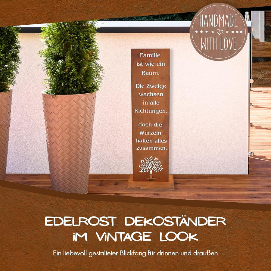 - Handgefertigte Dekoration mit Charme: Jede Spruchtafel wird mit viel Liebe zum Detail von Hand gefertigt. Die natürliche Edelrost-Patina und die hochwertige Umkantung verleihen ihr eine stilvolle Vintage-Optik