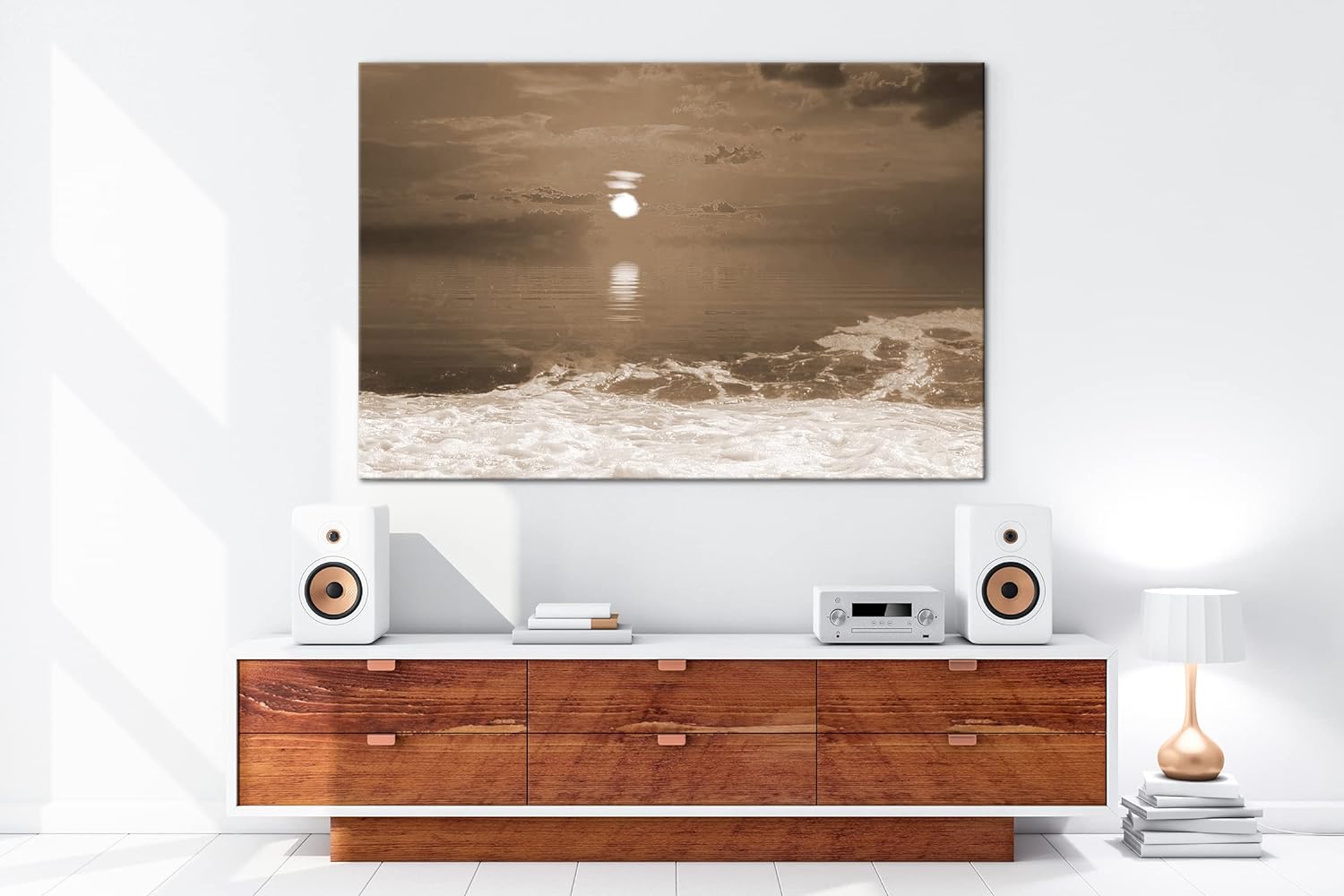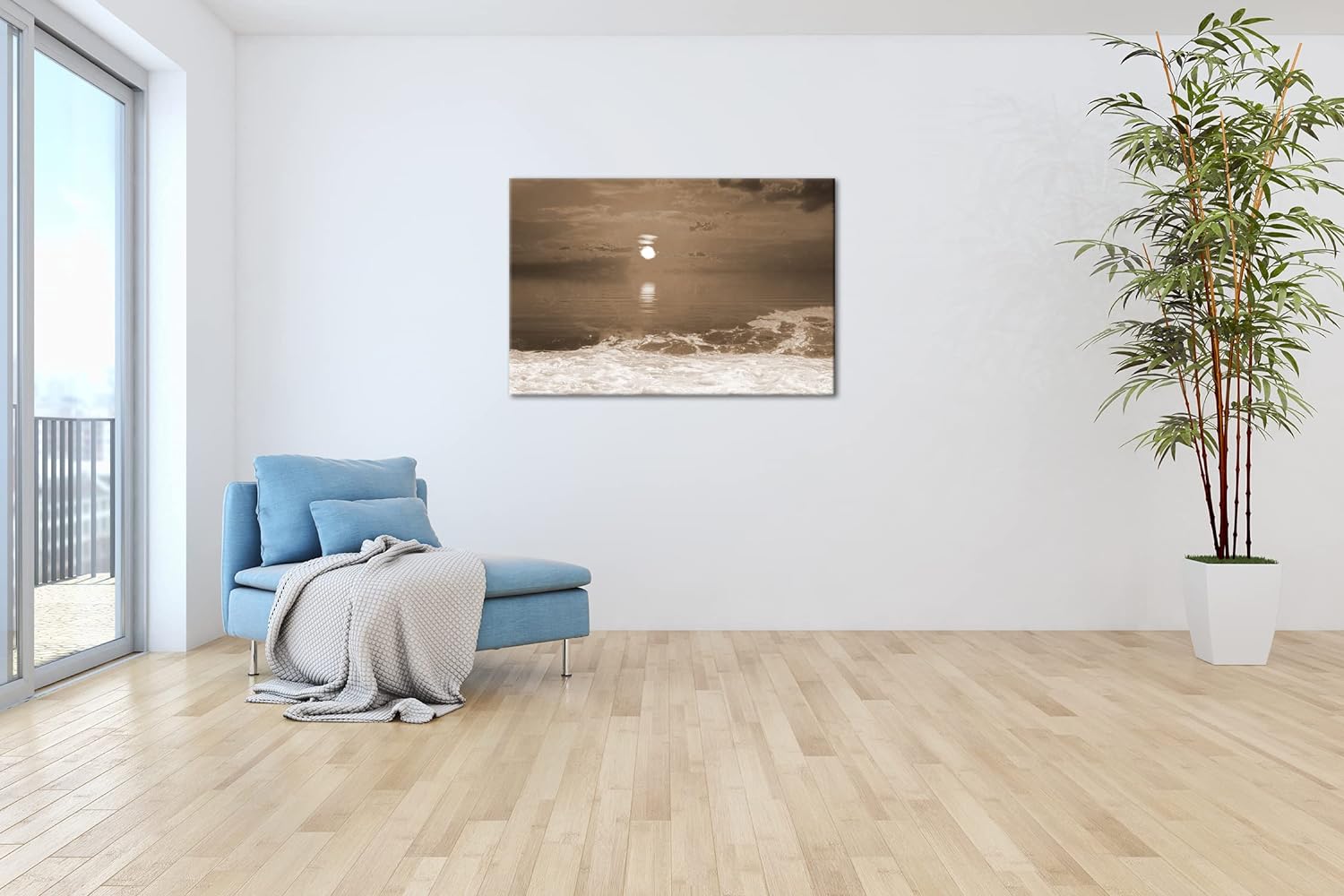 deyoli rot-orangener Sonnenuntergang am Strand Format: 80x60 als Leinwand, Effekt: Sepia, Motiv fert