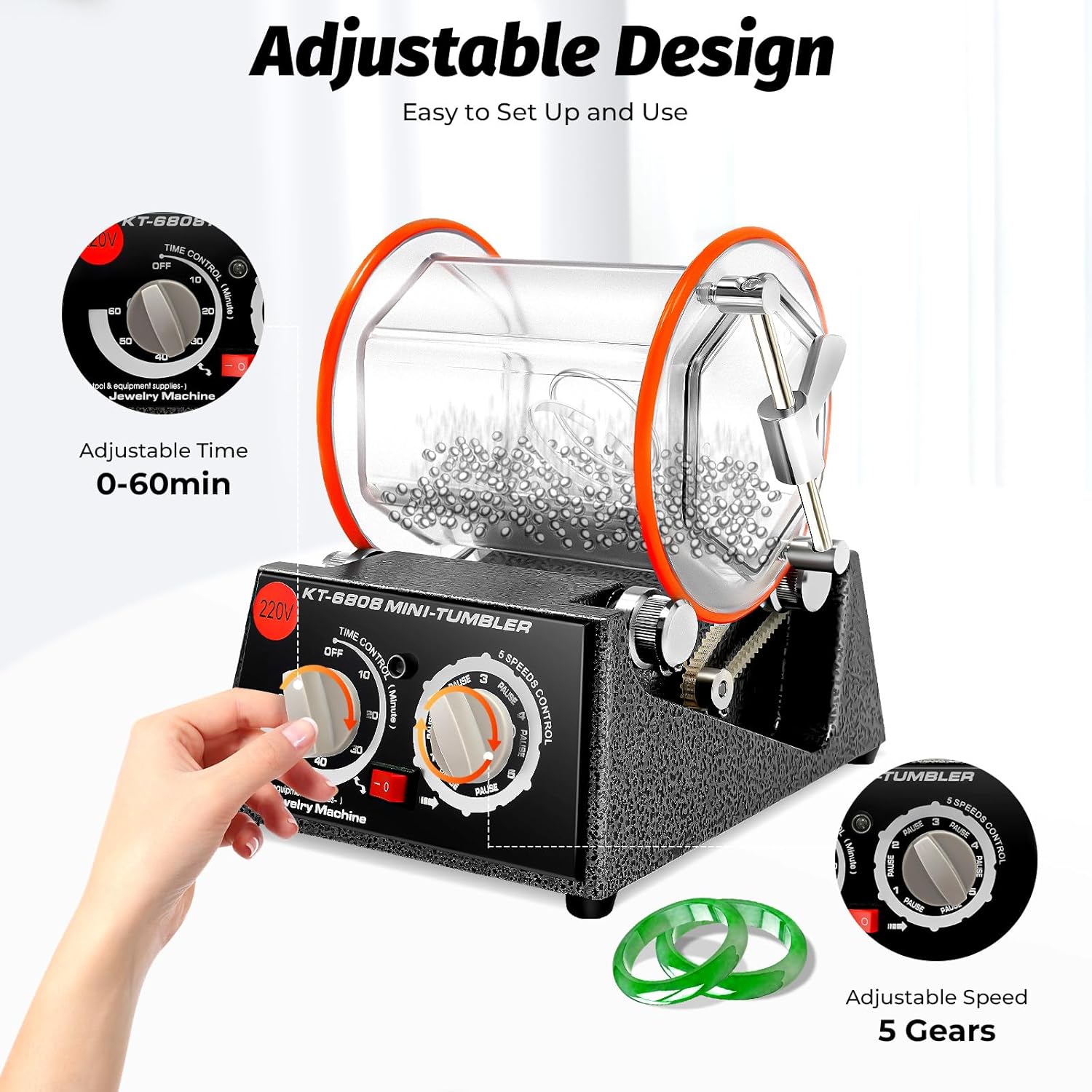 - [Hervorragende Leistung]: 60W Gleichstrommotor mit bis zu 3000 Umdrehungen pro Minute, hochwertige Poliertrommel und Polierstahlkugeln können kleine Objekte leicht polieren, Oberflächenflecken von Ihrem Schmuck entfernen und Ihrem alten Schmuck ein