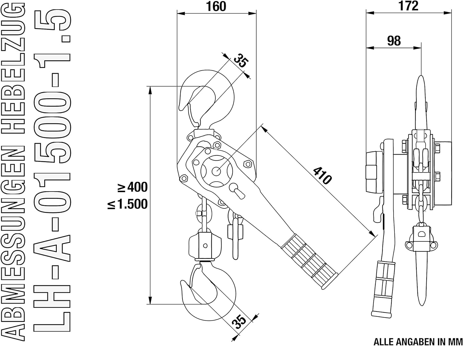 • Kapazität bis 1.500kg - Kettenlänge 1.5m