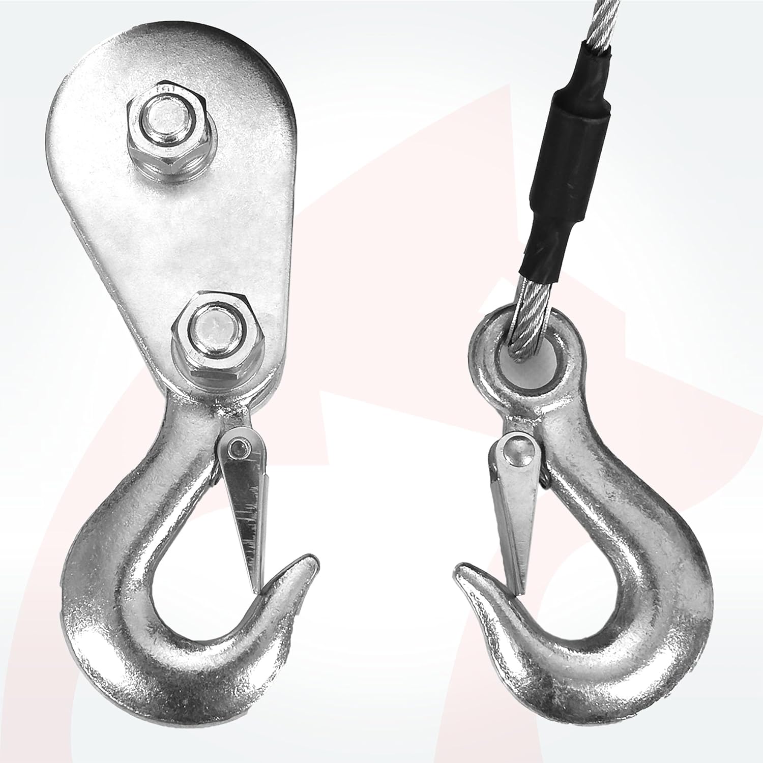 - Mit robustem Befestigungshaken + Umlenkrolle für doppelte Zugkraft
