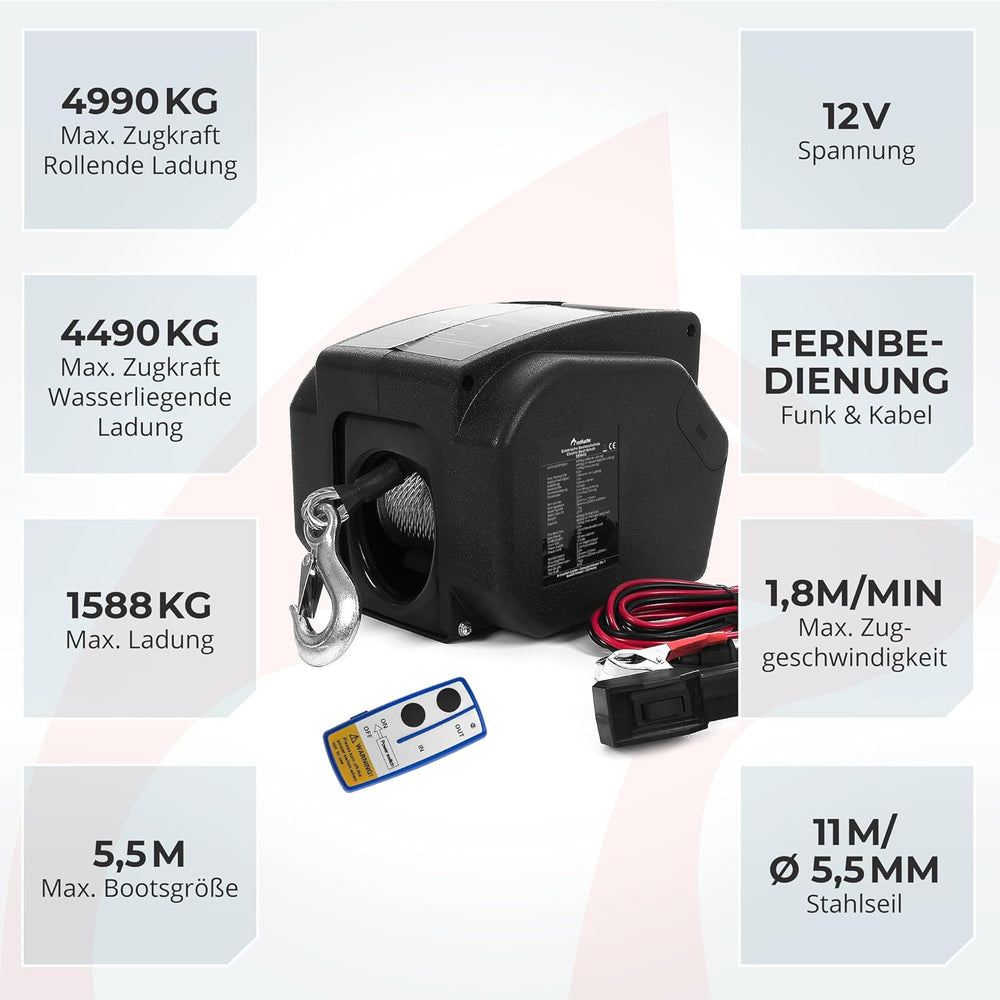 - Seilwinde kann per drahtloser Funkfernbedienung oder manuell bedient werden