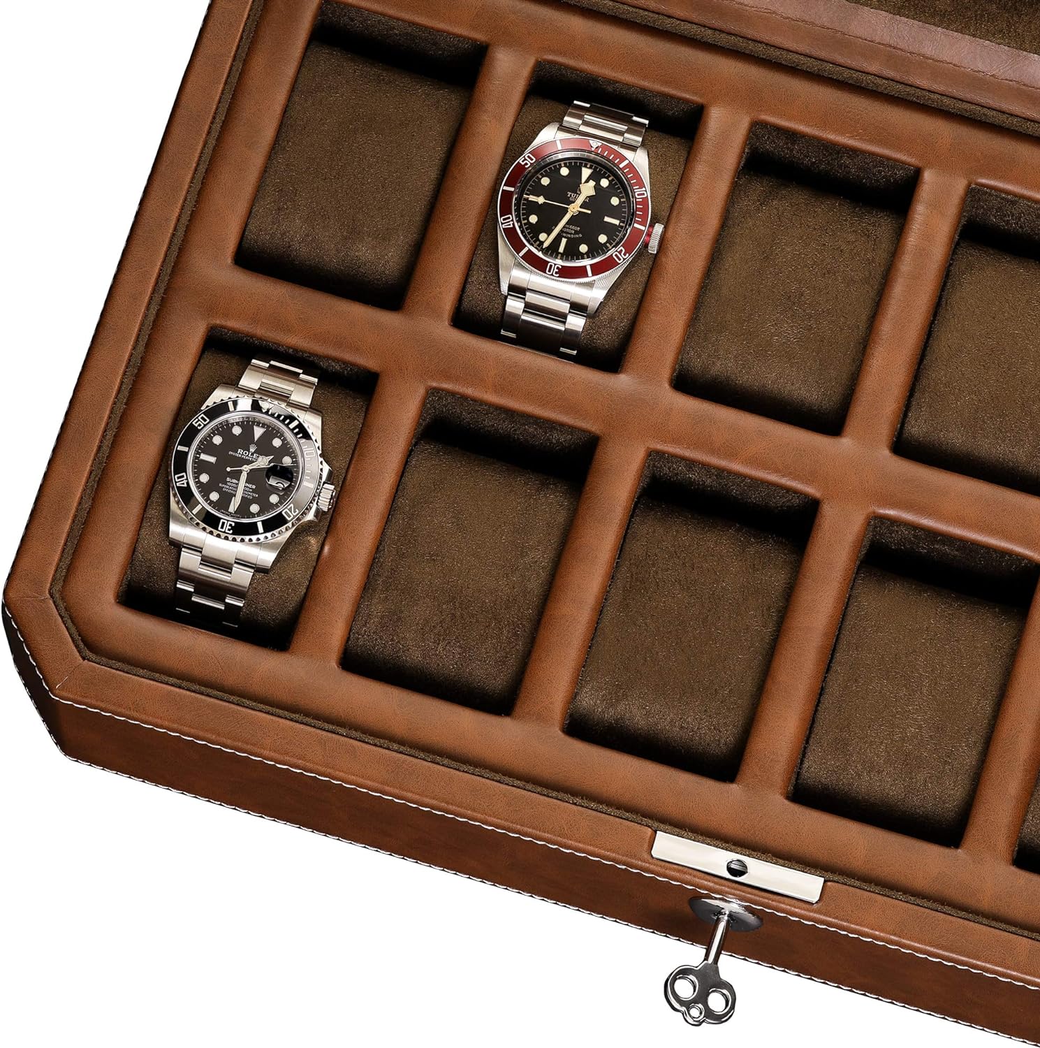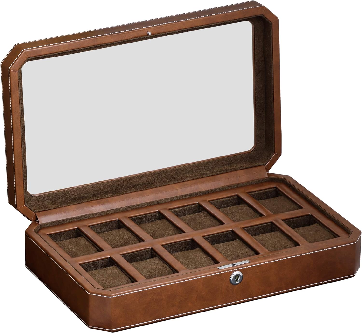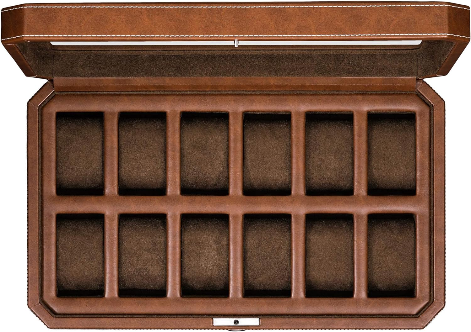 ROTHWELL 12 Slot Leder Uhrenbox - Luxus Uhrengehäuse Display Organizer, Herren Aufbewahrungsboxen Ha