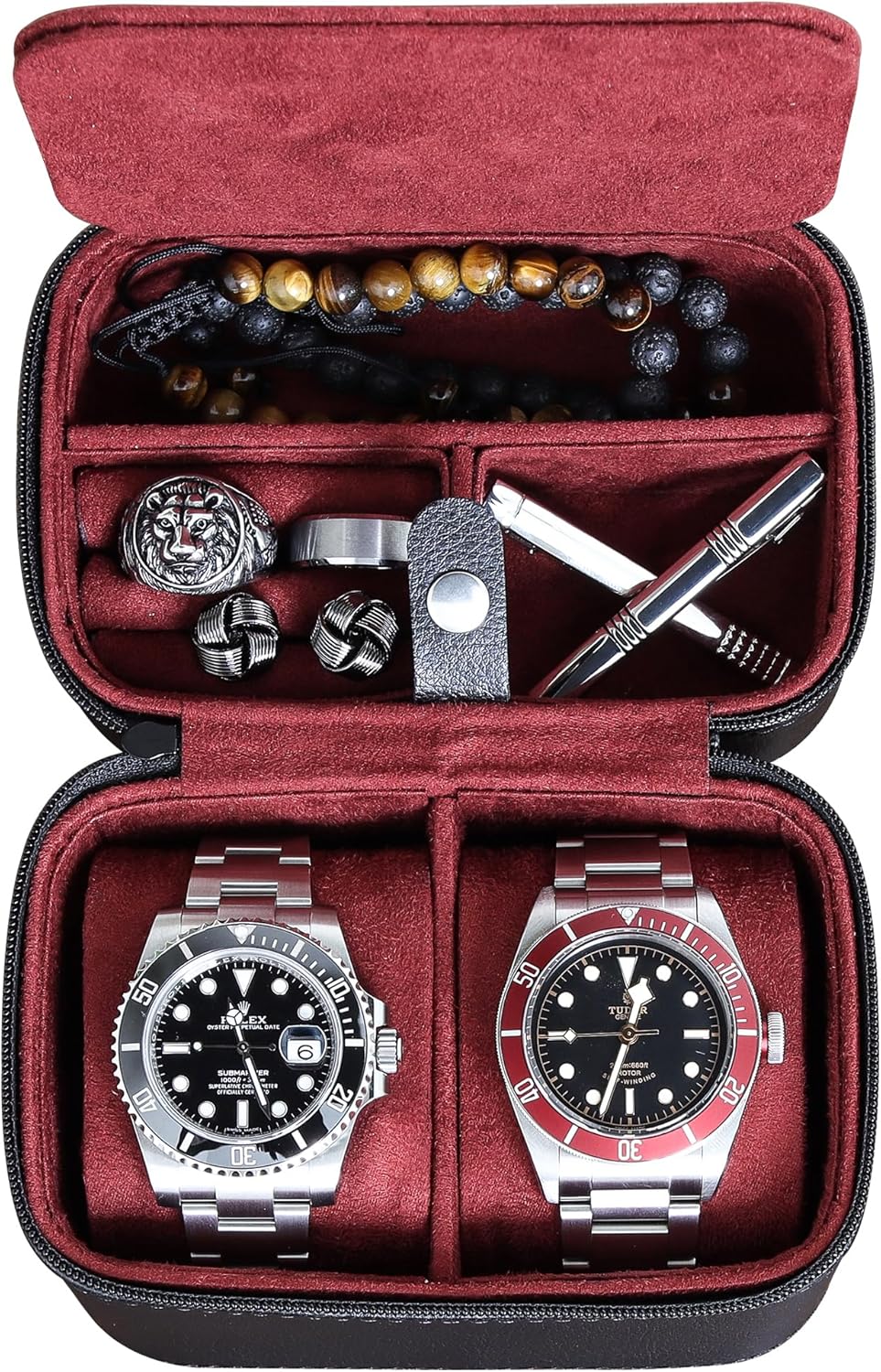 - PERFEKTES REISEZUBEHÖR; Leicht und perfekt für Wochenendausflüge, Geschäftsreisen oder einfach nur die Aufbewahrung Ihrer wertvollen Uhren und Accessoires. Bewahren Sie Ringe, Armbänder, zusätzliche Uhrenarmbänder oder anderes Zubehör in einem