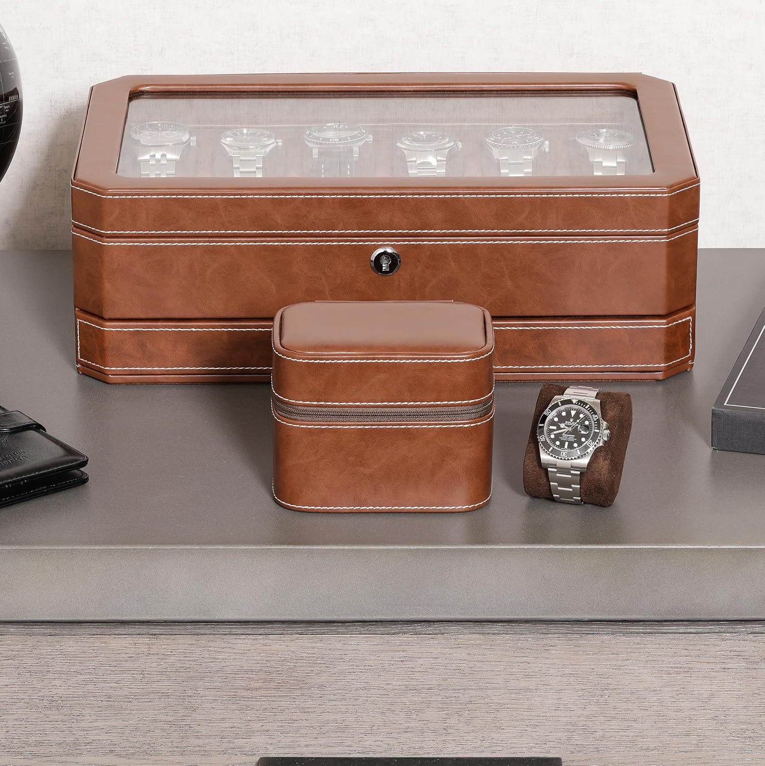 - PERFECT TRAVEL ACCESSORY; Lightweight and perfect for weekend getaways, work travel or just storing your valuable watches and accessories. Keep rings, bracelets, extra watch straps or any other accessories in a sectioned off top compartment and keep two
