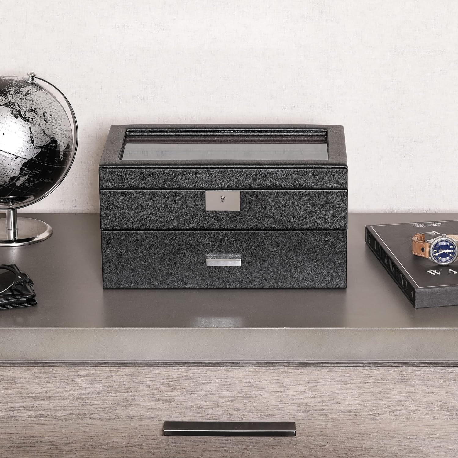 ROTHWELL Uhrenbox aus Leder mit 20 Fächern, luxuriöses Uhrengehäuse, Schmuck-Organizer, verschliessb