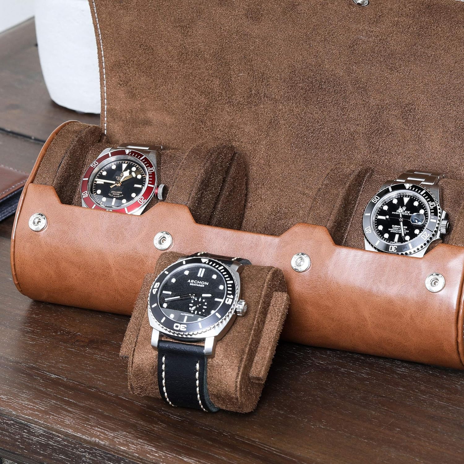 - PASSENDES ZUBEHÖR: Jede 3er-Uhrenrolle wird von denselben Lederverarbeitern handgefertigt, die unsere handwerklichen Uhrenboxen herstellen. Jede Farbe passt perfekt zu unseren Uhrenboxen. Mit 4 versteckten Druckknöpfen zum Schliessen ist diese