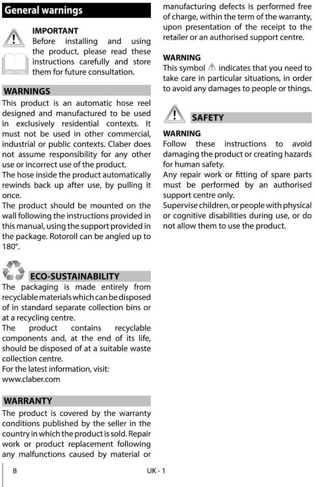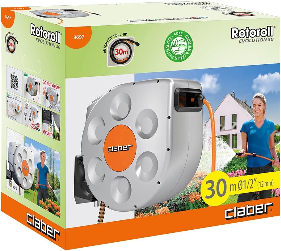 - Ausgestattet mit Anschlussschlauch (2 MT) und Hahnstück 3/4”, automatischen Kupplungen und Jet-Sprüh-Düse. Inklusive Schrauben und Dübel für die Wandmontage.