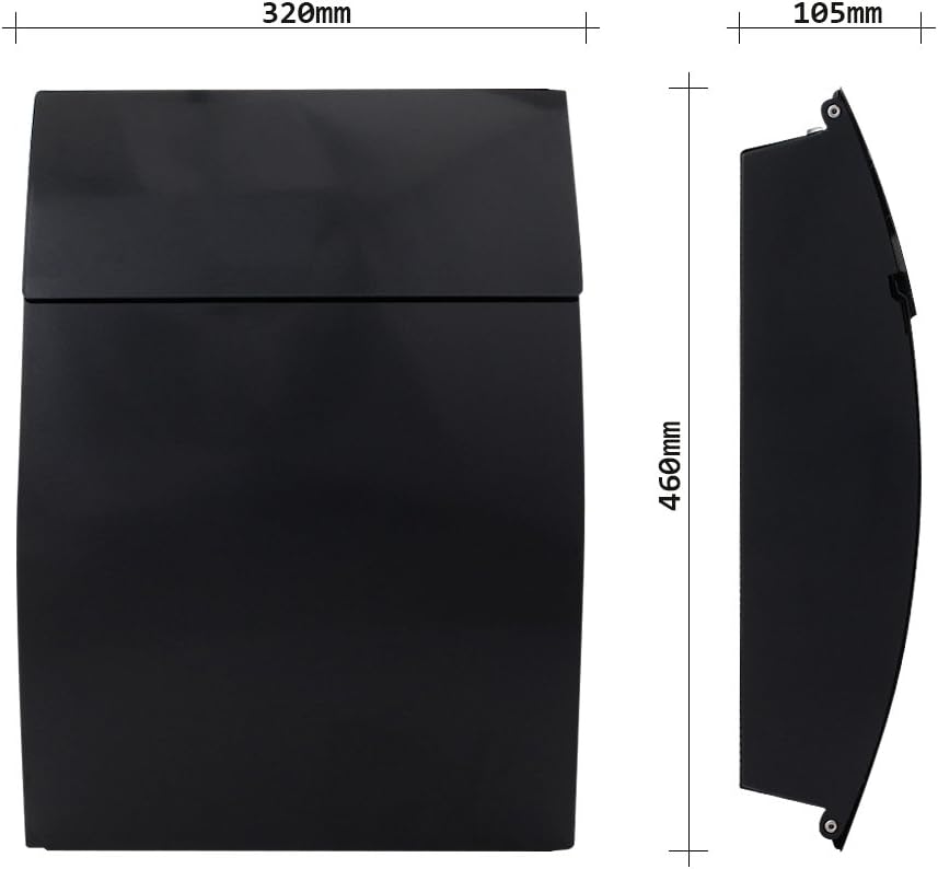 - Grosser, geschwungener Korpus, das Schloss wird durch die Klappe verdeckt und ist dadurch vor der Witterung geschützt und unterstreicht das edle Design der Mailbox.