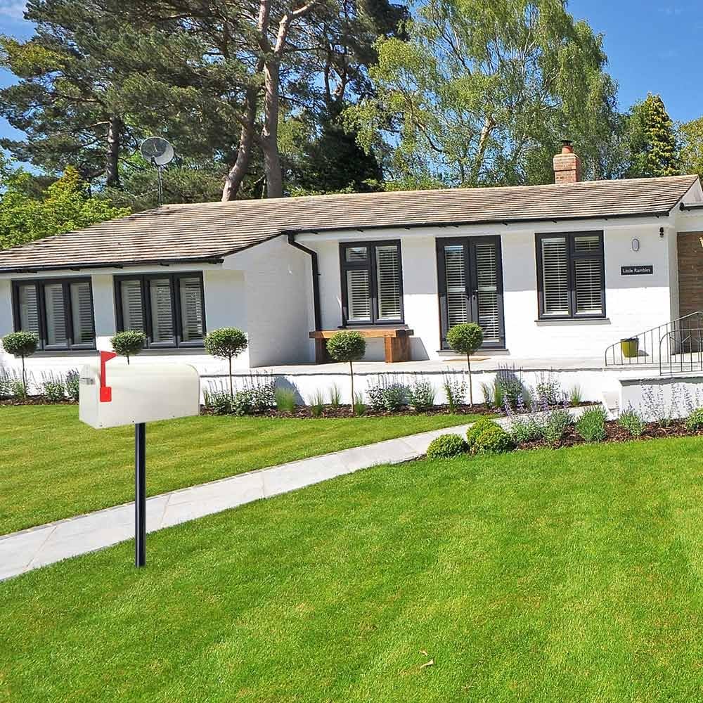 - Briefkasten mit roter, schwenkbarer Fahne, zur Ständermontage vorgesehen
