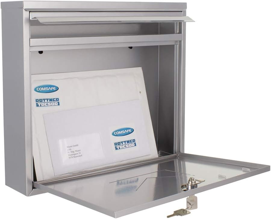 - SCHLOSS: Der Briefkasten von Rottner schliesst mit einem Zylinderschloss, inklusive 2 Schlüssel, Türanschlag unten