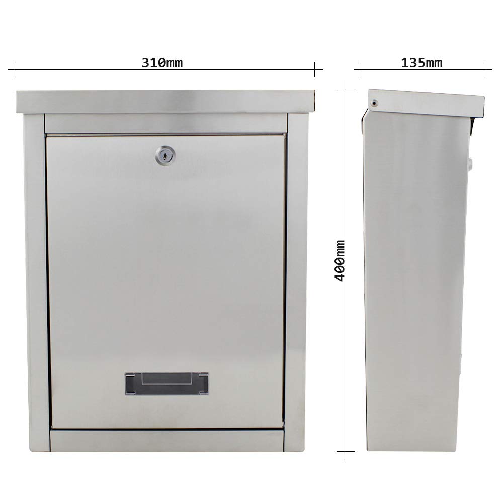 - ABMESSUNGEN: Briefkasten: HxBxT 400x310x135 mm