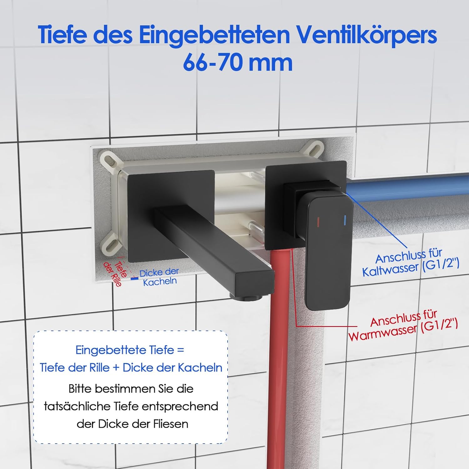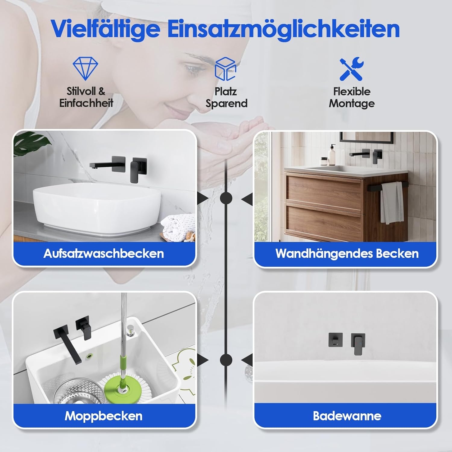 - 304-Edelstahl-Konstruktion: Die aus hochwertigem Edelstahl 304 gefertigte Unterputz-Waschtischarmatur ist besonders widerstandsfähig gegen Rost und Korrosion. Die Unterputz Montage spart mehr Platz für das Waschbecken und erleichtert das Abwischen der