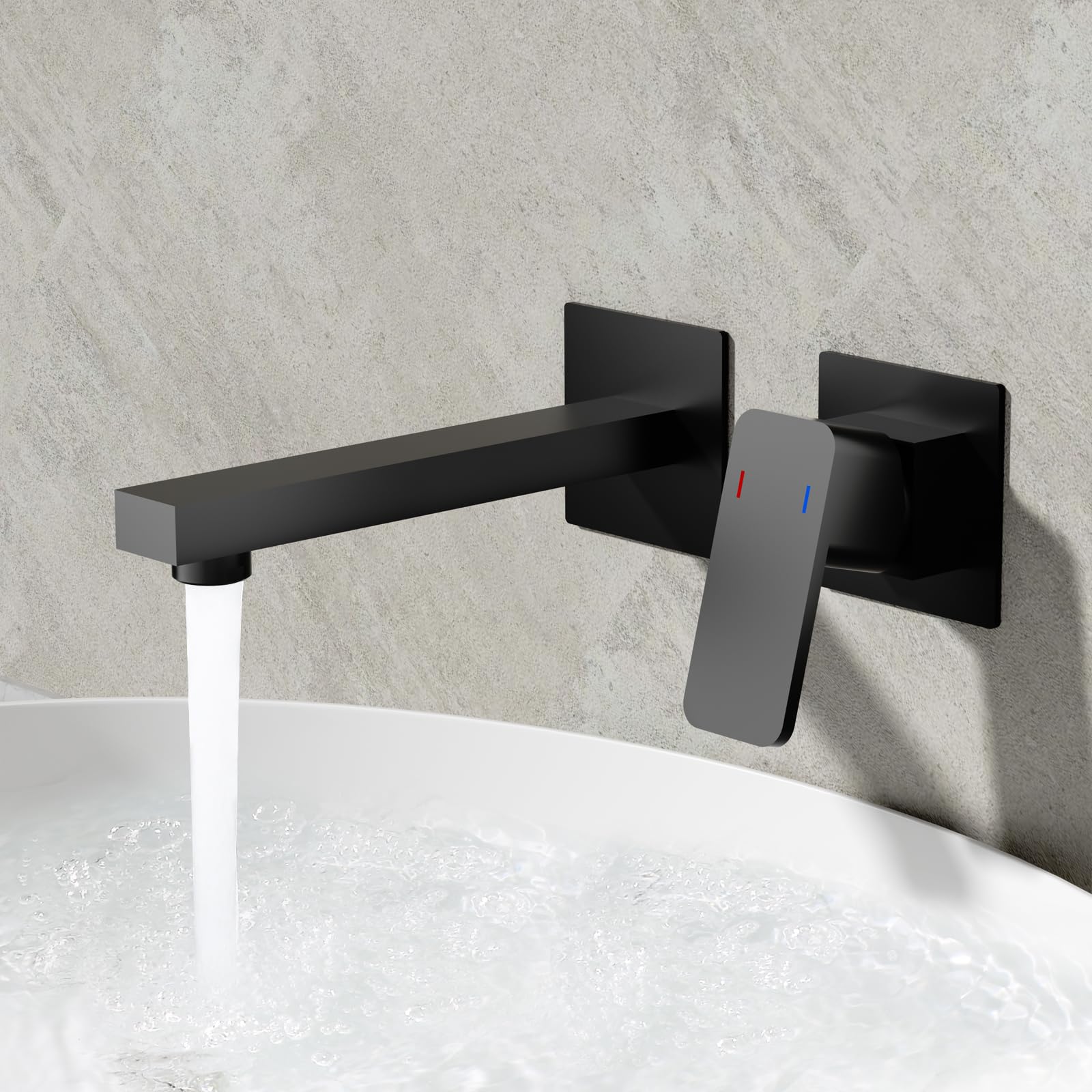 - Mattschwarzes Finish: Die mattschwarze Waschtischarmatur Unterputz unterstreicht die Sauberkeit und verhindert Fingerabdrücke, wodurch der gesamte Raum modern, elegant und gediegen wirkt
