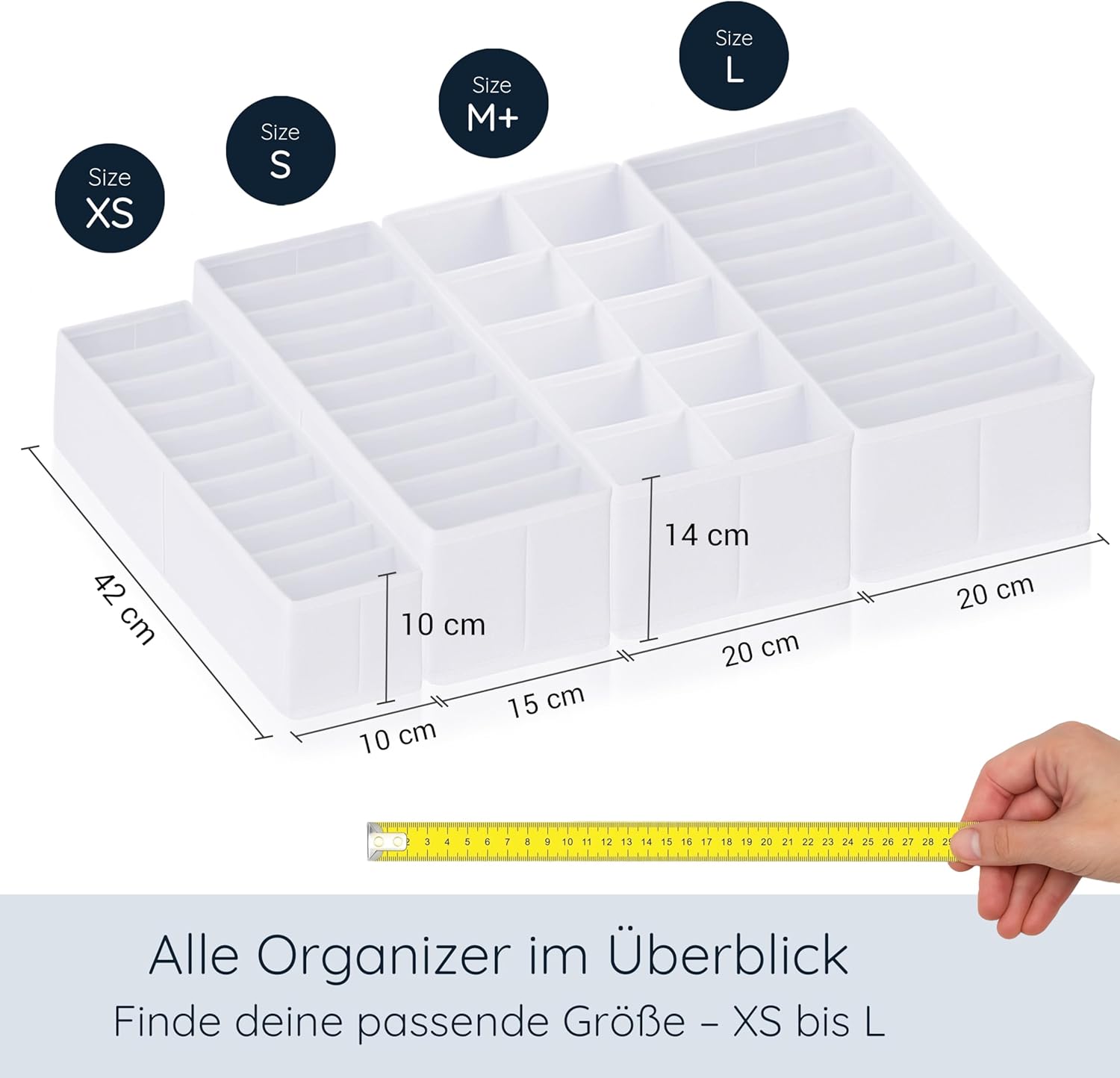 - ✨ FORMSTABIL MIT HOHEN FÄCHERN – Die Fächer sind 14 cm (XS: 10 cm) hoch und dienen als Trennsystem. Die Kleidung fällt nicht in sich zusammen und es hilft bei der Organisation. Der Schubladen Organizer dient als Ordnungssystem für Tshirts,