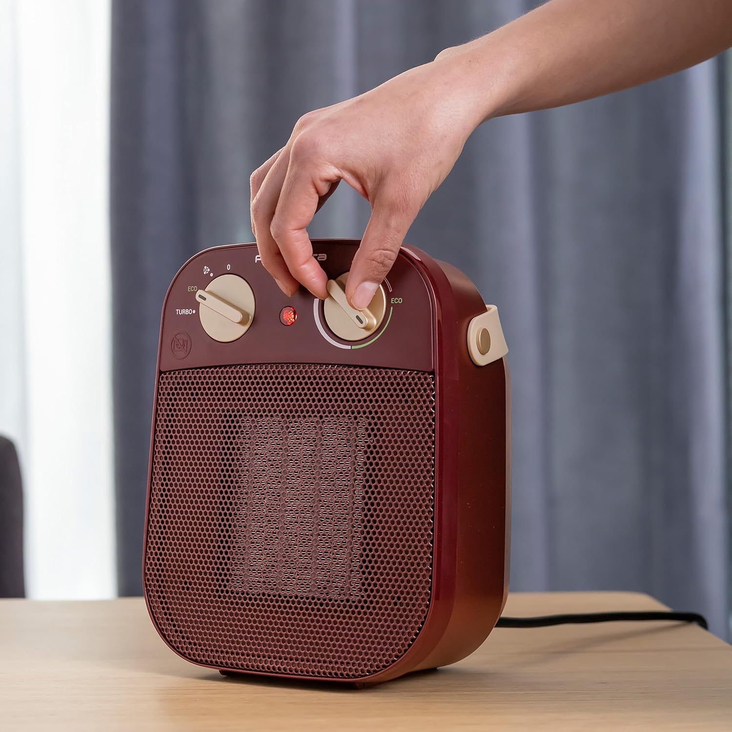 • Personalisiertes Heizen: Stellen Sie die gewünschte Temperatur über das mechanische Thermostat ein und wählen Sie zwischen dem ECO-Modus (900 W) oder dem TURBO-Modus für schnelles Heizen (1800 W)