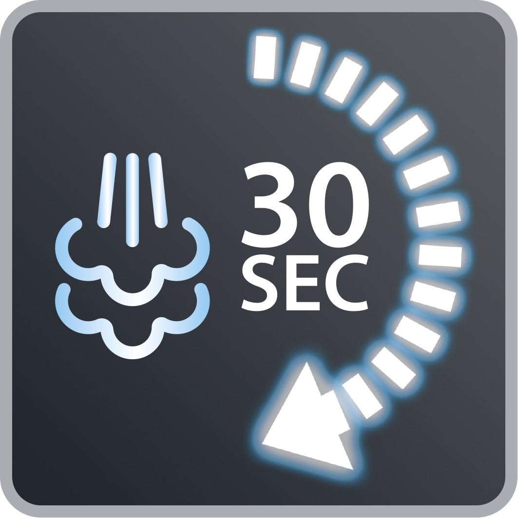 - Aufheizzeit von nur 30 Sekunden, Antikalk-Kartusche für eine lange Lebensdauer, pflegeleichte Mikrofasertücher mit System zum Entfernen ohne Kontakt mit den Händen.