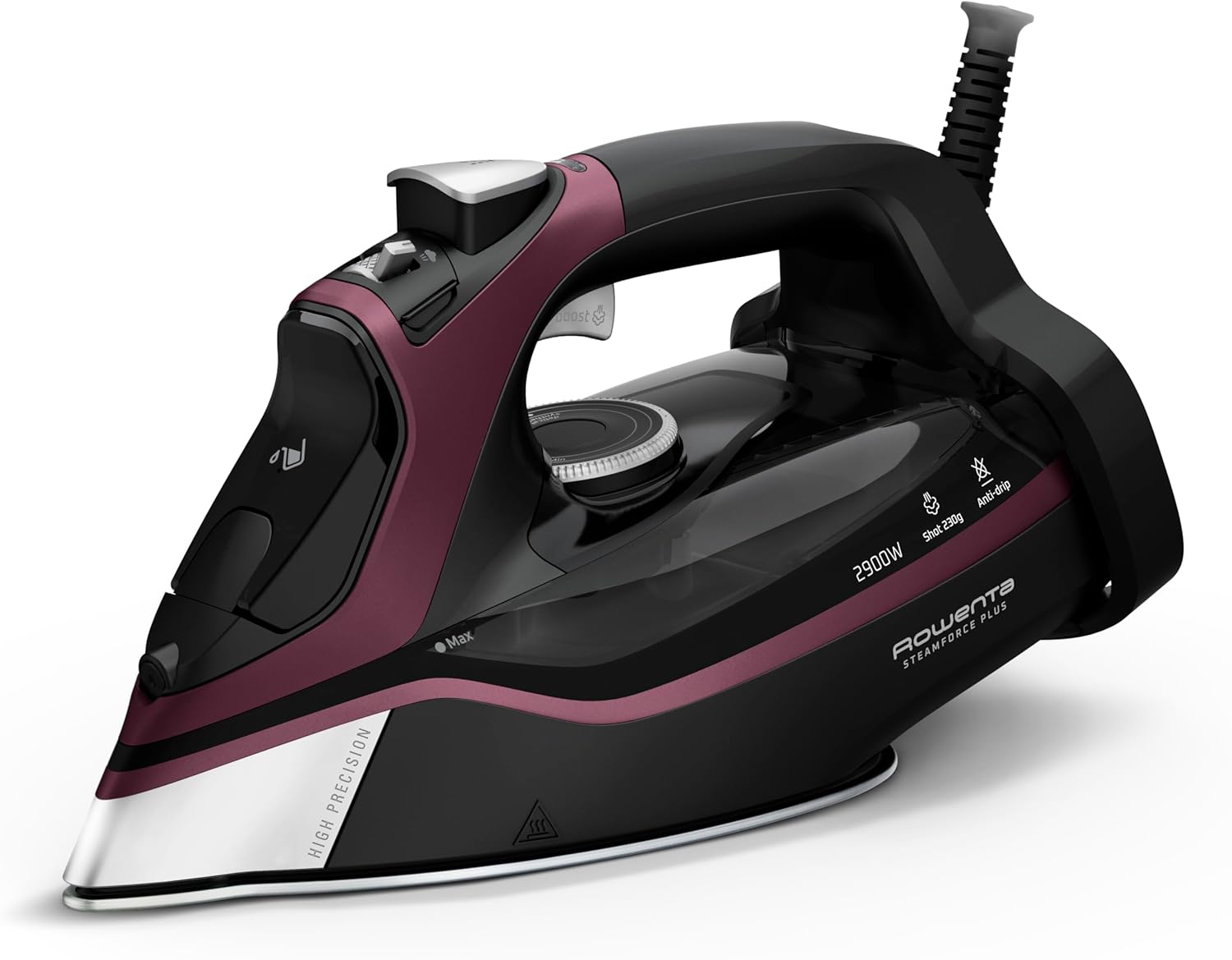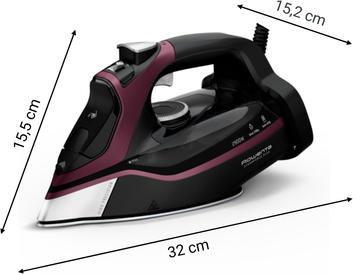 - Leistungsstarkes Dampfbügeleisen mit 2900 W Leistung, das eine hohe Dampfleistung mit einer kontinuierlichen Dampfleistung von 45 g/min und einem leistungsstarken Dampfstoss von 230 g/min kombiniert. Für dicke Stoffe und hartnäckige Falten