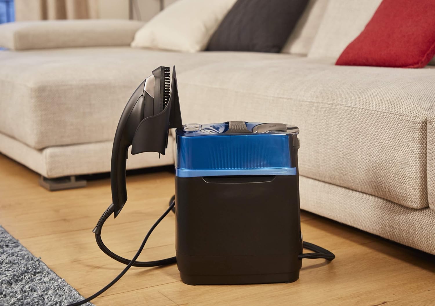 - 2170 W Dampfbürste mit kontinuierlicher Dampfleistung von bis zu 90 g/min und starkem Dampfstoss von bis zu 200 g/min mit einer Multilochsohle mit herausnehmbarem 1,1 l Tank