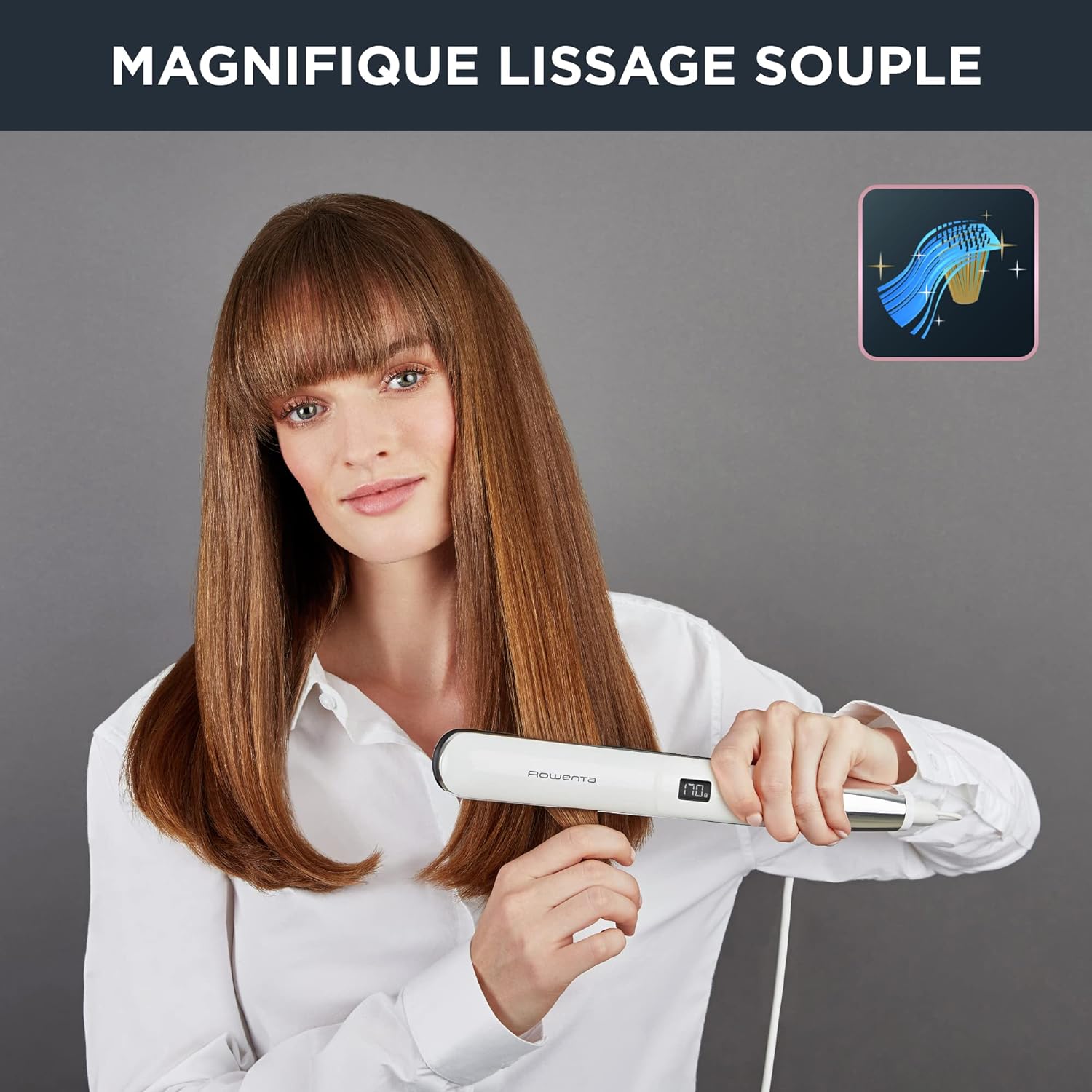 - Aussergewöhnliches Glätten: Eine integrierte natürliche Bürste, die das Volumen steigert für geschmeidiges und perfekt glattes Haar