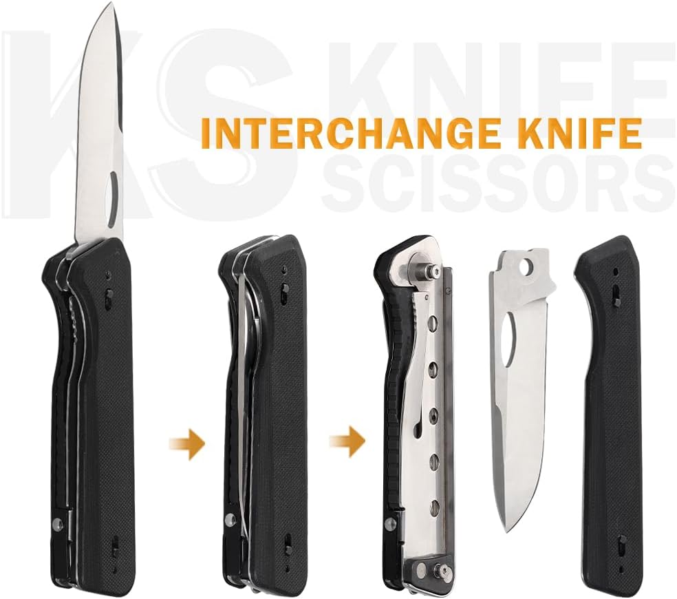 - UPGRAPED VERSION für S501: 1. Auswechselbare Messerklinge (17 Stück optional); 2. Aluminium zu G10 Griff; 3. bessere Materialien wie 8Cr13 Mov Stell für Klinge.