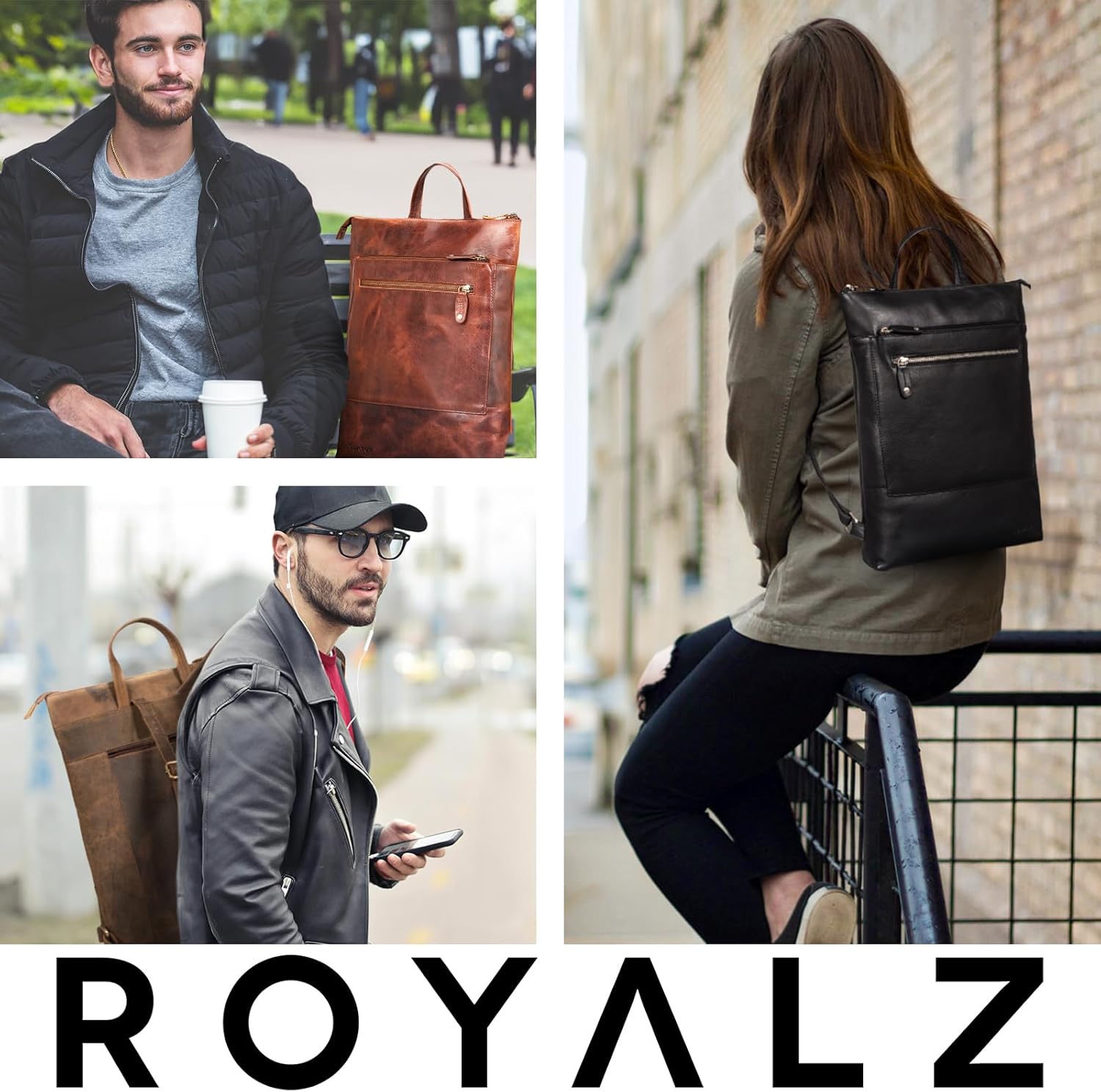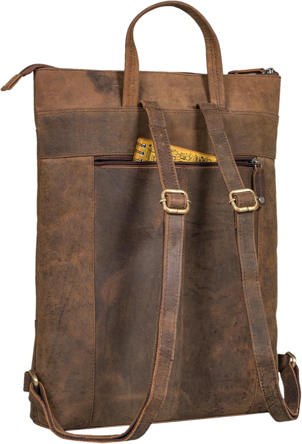 PRODUKTBESCHREIBUNGEN Flacher Design Laptop Rucksack auch Echtleder In einer Welt, in der Mobilität und Stil Hand in Hand gehen, ist dieser flache Laptop-Rucksack aus echtem Leder im Vintage-Look ein Muss für den anspruchsvollen Mann von heute. Dieser exquisit gestaltete Rucksack vereint Ästhetik und Funktionalität und eignet sich perfekt für Laptops bis 15,6 Zoll. Der Laptop-Rucksack besticht durch seinen zeitlosen Vintage-Look, der sowohl Damen als auch Herren anspricht. Das echte Leder verleiht dem Rucksack nicht nur eine ansprechende Ästhetik, sondern sorgt auch für Langlebigkeit und Strapazierfähigkeit. Die dezente Farbpalette passt zu verschiedenen Outfits und Anlässen, vom Geschäftstermin bis zum lässigen Wochenendausflug. Der verstellbare Schultergurt ermöglicht optimalen Tragekomfort, egal ob die Tasche über der Schulter oder als Umhängetasche getragen wird. Das unauffällige, flache Reissverschlussfach auf der Rückseite bietet eine diskrete Möglichkeit, wichtige Dokumente oder Wertsachen unterwegs sicher zu verstauen. Im Inneren schafft eine durchdachte Aufteilung Ordnung. Das Hauptfach bietet ausreichend Platz für Bücher, Notizbücher oder Kleidung. Das zusätzliche Notebookfach schützt Ihr Notebook vor Stössen und Kratzern und hält es sicher an seinem Platz. Zusätzliche Innenfächer bieten noch mehr Stauraum und Organisationsmöglichkeiten. Zwei Stiftehalter sorgen dafür, dass Schreibutensilien immer griffbereit sind. Ein seitliches Reissverschlussfach bietet Platz für Kleinteile wie Schlüssel oder Portemonnaie. Zwei weitere Fächer bieten Platz für Smartphone, Powerbank oder ähnlich grosse Geräte. Alles in allem verkörpert dieser flache Laptop-Rucksack aus echtem Leder in Vintage-Optik die Verschmelzung von zeitloser Eleganz und moderner Funktionalität. Er ist der ideale Begleiter für Frauen und Männer, die Stil und Organisation schätzen. Mit einem Fassungsvermögen, das perfekt auf Mehr