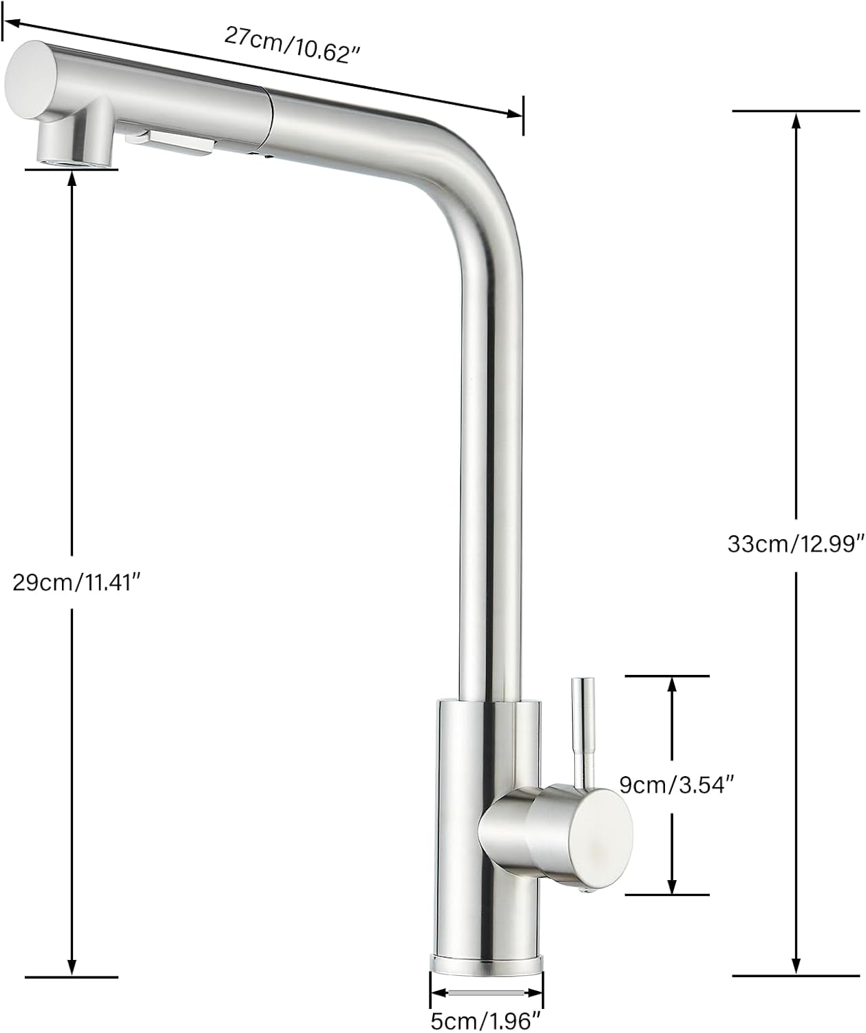 - MATERIAL: Hochwertiger Edelstahl mit gebürsteter Nickel-Oberfläche für langlebige Nutzung und zeitloses Design.Der herausziehbare Brausekopf leicht zu bedienen. Keramik Kartusche kann die Lebensdauer der Armatur verlängern.