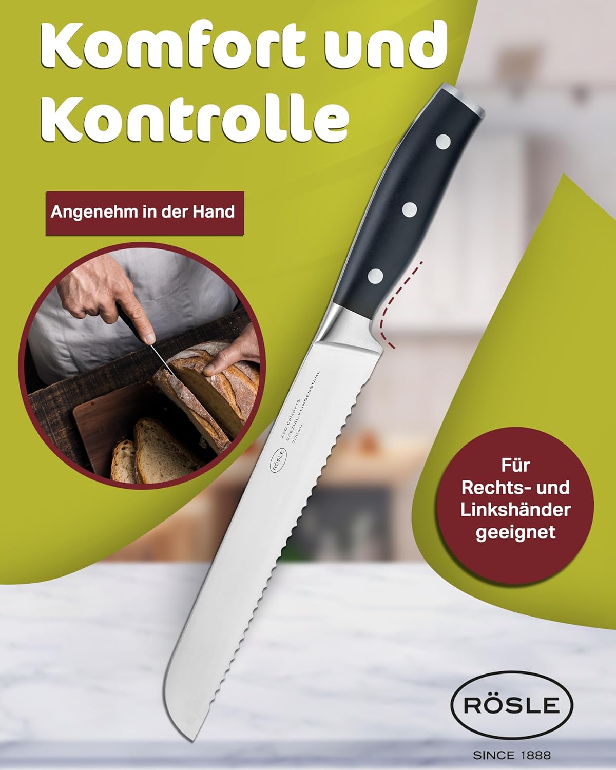 - RÖSLE Brotmesser Tradition: Hochwertiges Küchenmesser zum Schneiden von Brot, Brötchen und Baguette - ein unverzichtbares Messer für den täglichen Gebrauch