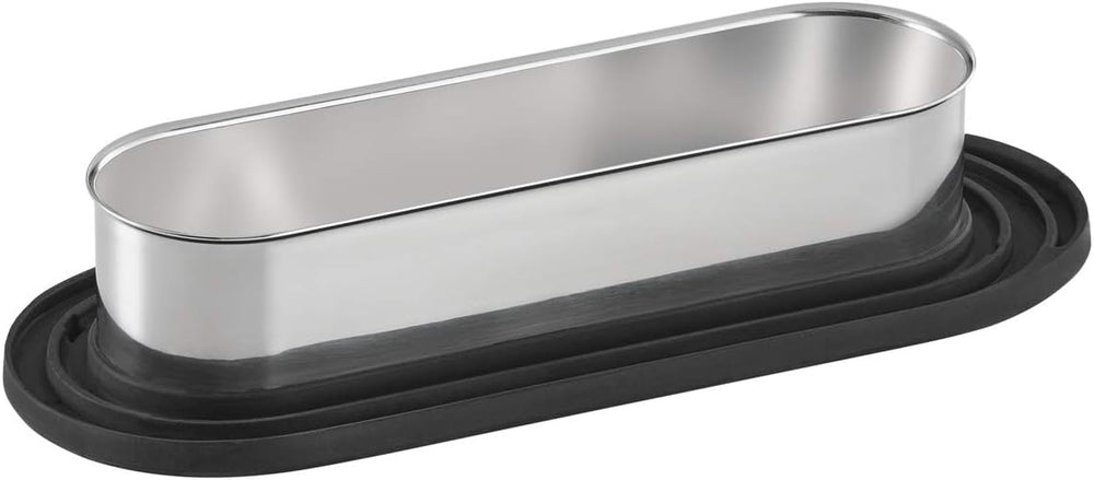 - Länge 21 cm - Breite 8,3 cm - Höhe 5,4 cm - Bodendurchmesser 8,3 cm - Füllmenge 0,5 l - Edelstahl 18/10 hochglänzend / matt, gehärtetes Glas, Silikon glatt schwarz