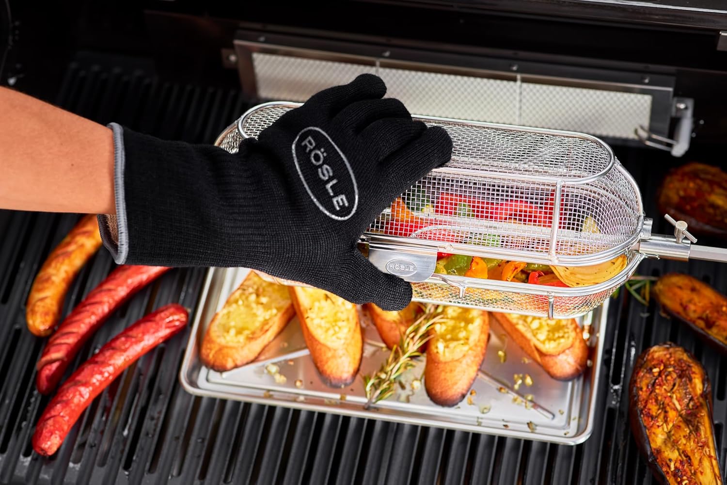 - RÖSLE Drehspiesskorb: Hochwertiger Grillspiesskorb für die effiziente und einfache Zubereitung von Kartoffelspalten und Gemüsewürfeln auf dem Gas- oder Kohlegrill