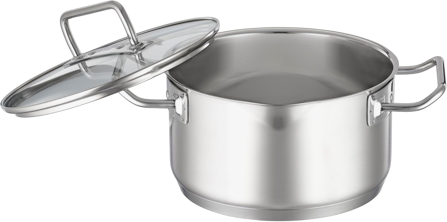 • Hochwertig: Aus Edelstahl 18/10 mit einem Spezialboden mit 5 mm Aluminiumkern hergestellt liegt eine optimale Wärmeleitung und -verteilung vor - die satinierte Oberfläche verleiht dem Topf eine edle Optik - der edle Topfdeckel aus gehärtetem Glas