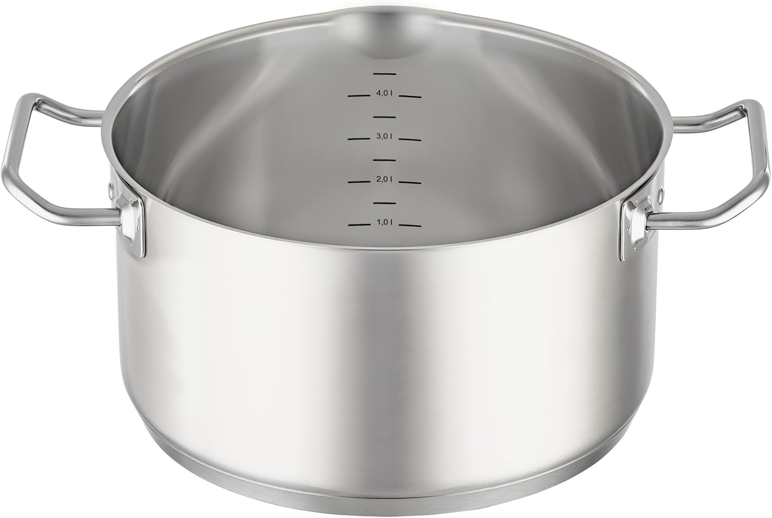• Praktisch: Mit Innenskalierung kann auf das Abmessen von Wasser oder Milch mit einem Messbecher verzichtet werden - gekapselter Spezialboden mit 5 mm Aluminiumkern für eine optimale Wärmeleitung und -verteilung - geradlinige Griffe zur einfachen