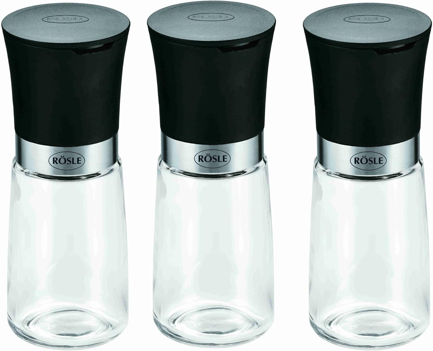 RÖSLE Gewürzmühlen-Set 3-tlg., Hochwertige Salz- und Pfeffermühlen mit Keramikmahlwerk für alle Arte