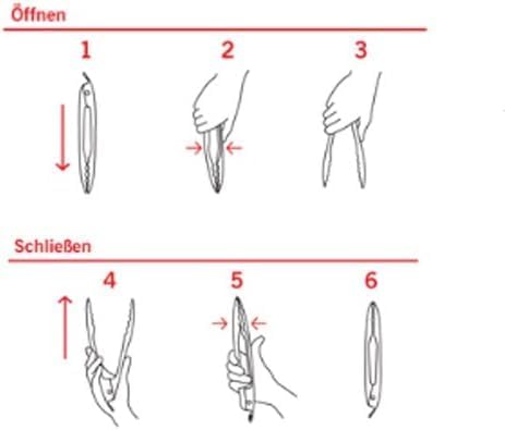 • Das Verschlusssystem erlaubt das intuitive Öffnen und Verriegeln mit einer Hand - die Zange öffnet sich nach unten gerichtet auf leichten Druck, und schliesst nach oben gerichtet - geschlossen aufbewahren oder tranportieren - geöffnet benutzen
