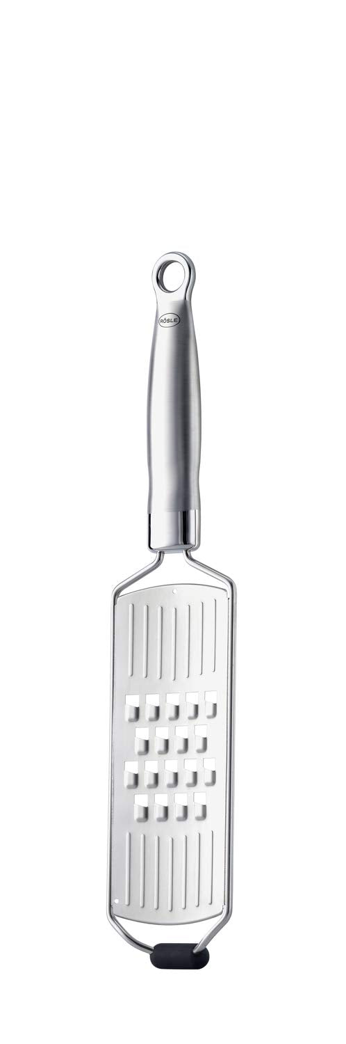 - RÖSLE Grobreibe: Hochwertige Reibe, welche unverzichtbar ist bei Rohkostsalaten, für selbstgemachte Rösti aus rohen Kartoffeln, grobe Käsespäne zum Überbacken oder Gemüsespäne mit "Biss" - ein edles Küchenwerkzeug mit bester Performance