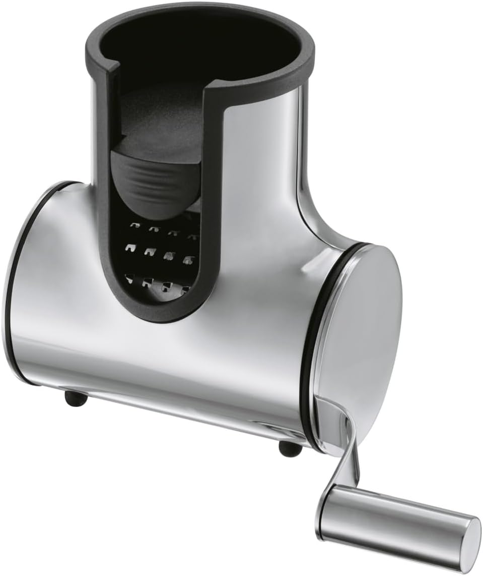 - Zubehör: Für gröbere Käse- und Schokoladeflocken beispielsweise Schnittkäse wie Gouda für Pizzas ist zusätzlich der RÖSLE Reibe-Einsatz Mittel erhältlich - die optimale Ergänzung zur Käsemühle mit feinem Reibeeinsatz