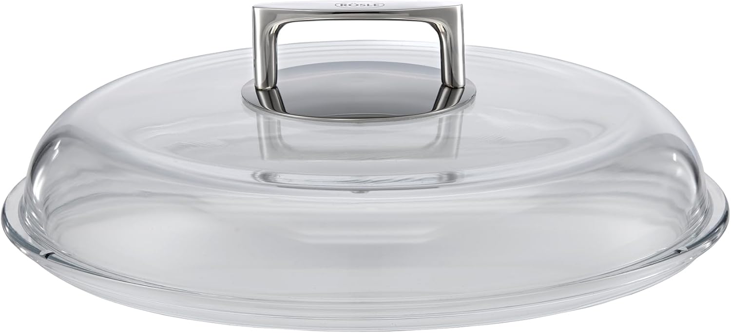 - RÖSLE SILENCE Borosilikat Glasdeckel: Hochwertiger universeller Bratpfannendeckel - ergänzt Pfannen und Servierpfannen mit einem Durchmesser von 24 cm - behalten Sie alles im Blick ohne Hitze oder aromatischen Dampf zu verlieren