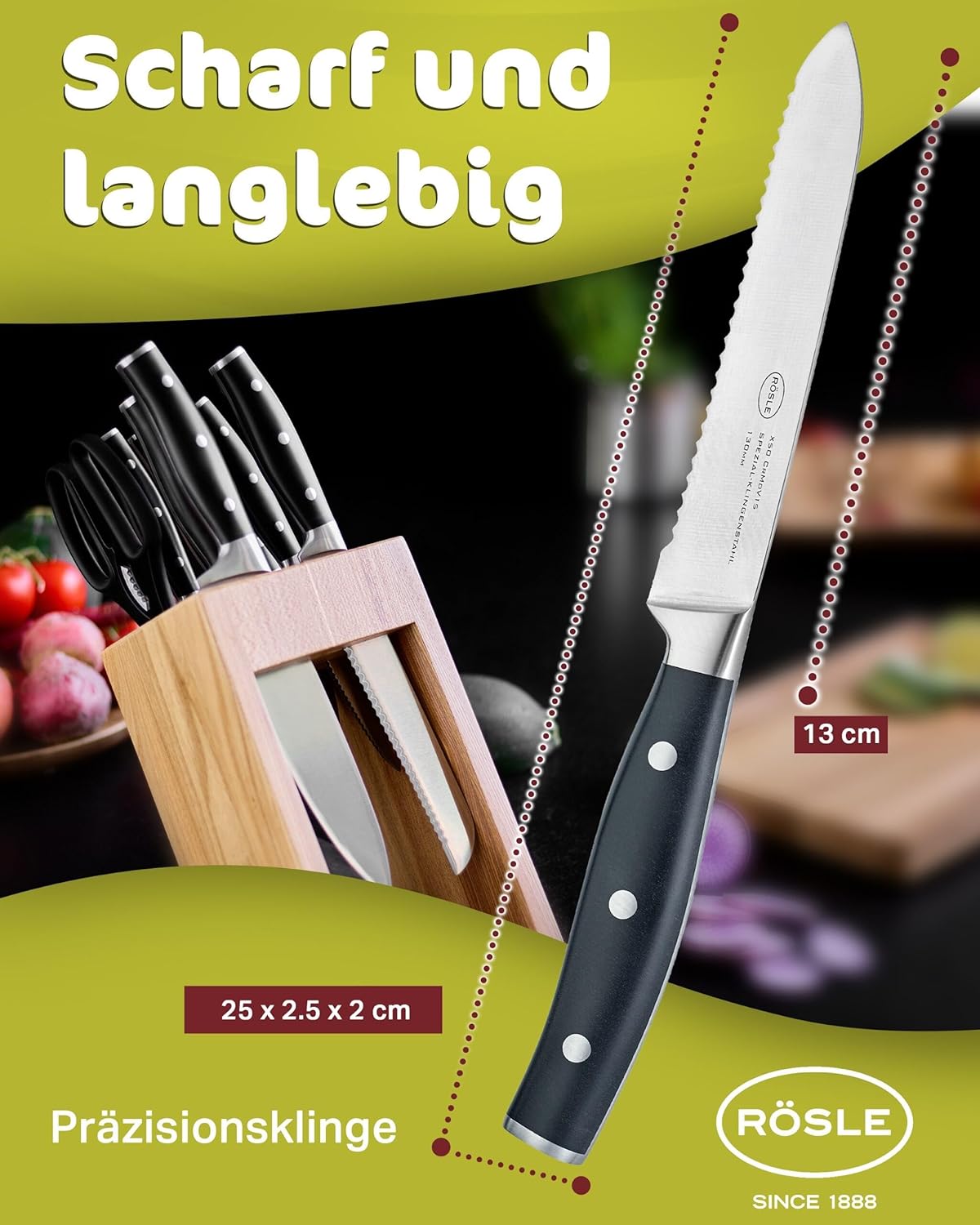 RÖSLE Universalmesser mit Wellenschliff Tradition, Hochwertiges Küchenmesser zum universellen Einsat