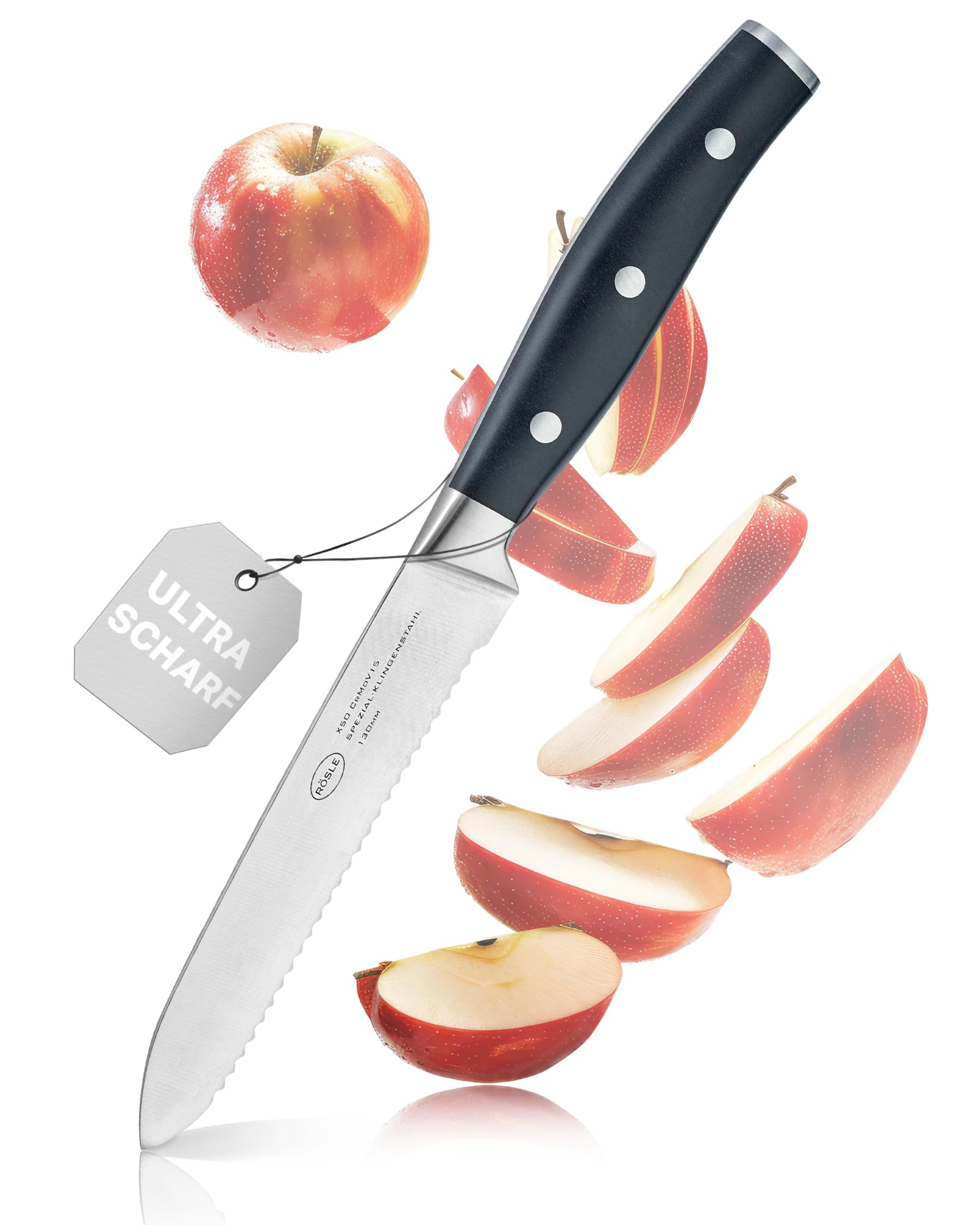 • RÖSLE Universalmesser mit Wellenschliff Tradition: Hochwertiges Küchenmesser zum universellen Einsatz für kleine bis mittelgrosse Gemüse- oder Obstsorten - ein unverzichtbarer Alltagshelfer in jeder Küche