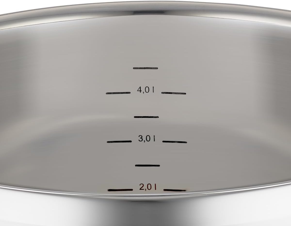 • Praktisch: Mit Innenskalierung kann auf das Abmessen von Wasser oder Milch mit einem Messbecher verzichtet werden - gekapselter Spezialboden mit 4 mm Aluminiumkern für eine optimale Wärmeleitung und -verteilung - ergonomische Griffe zur einfachen