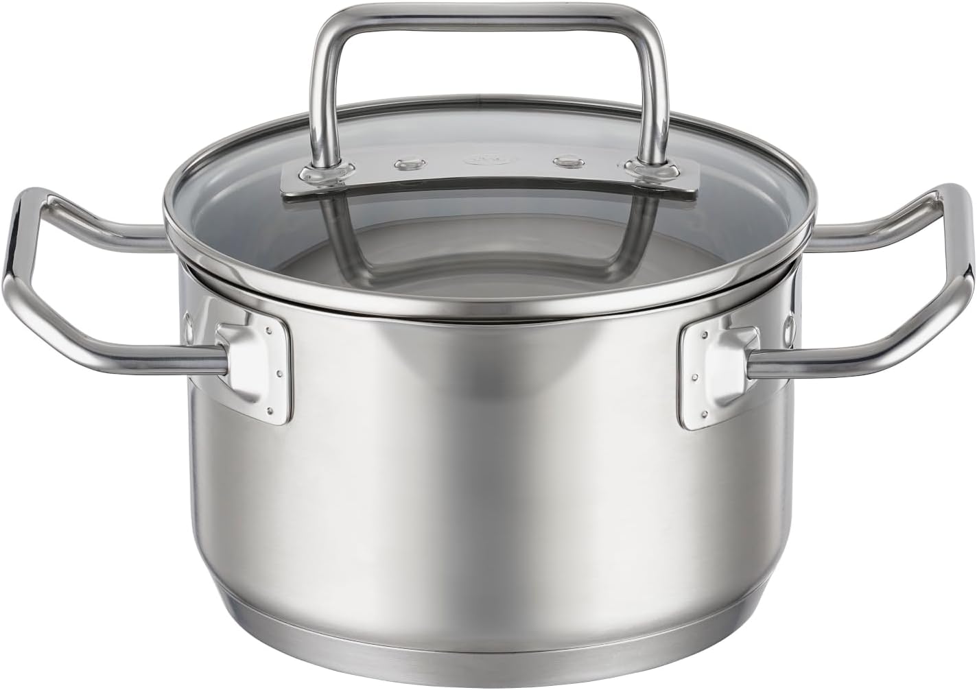 - Hochwertig: Aus Edelstahl 18/10 mit einem Spezialboden mit 5 mm Aluminiumkern hergestellt liegt eine optimale Wärmeleitung und -verteilung vor - die satinierte Oberfläche verleiht dem Topf eine edle Optik - der edle Topfdeckel aus gehärtetem Glas