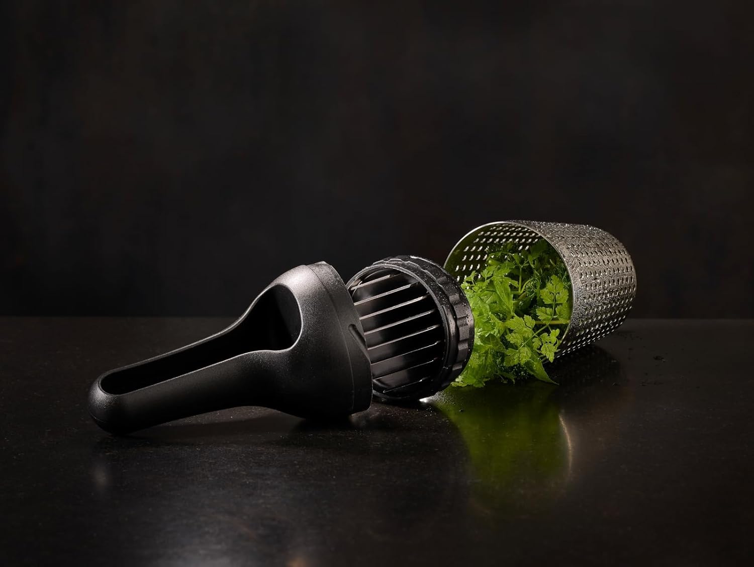 - RÖSLE Kräuterdusche mit Wiegemesser: Hochwertiger Schneider zum Waschen und Zerkleinern von frischen Kräutern kompakt in einem Produkt - ein Küchenhelfer zur Erleichterung der Kräuterbearbeitung