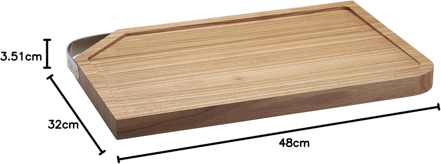 - Länge 48 cm - Breite 32 cm - Höhe 3,5 cm - Mass Funktionsteil 48 x 32 cm - Ulmenholz glatt natur, Edelstahl 18/10 matt