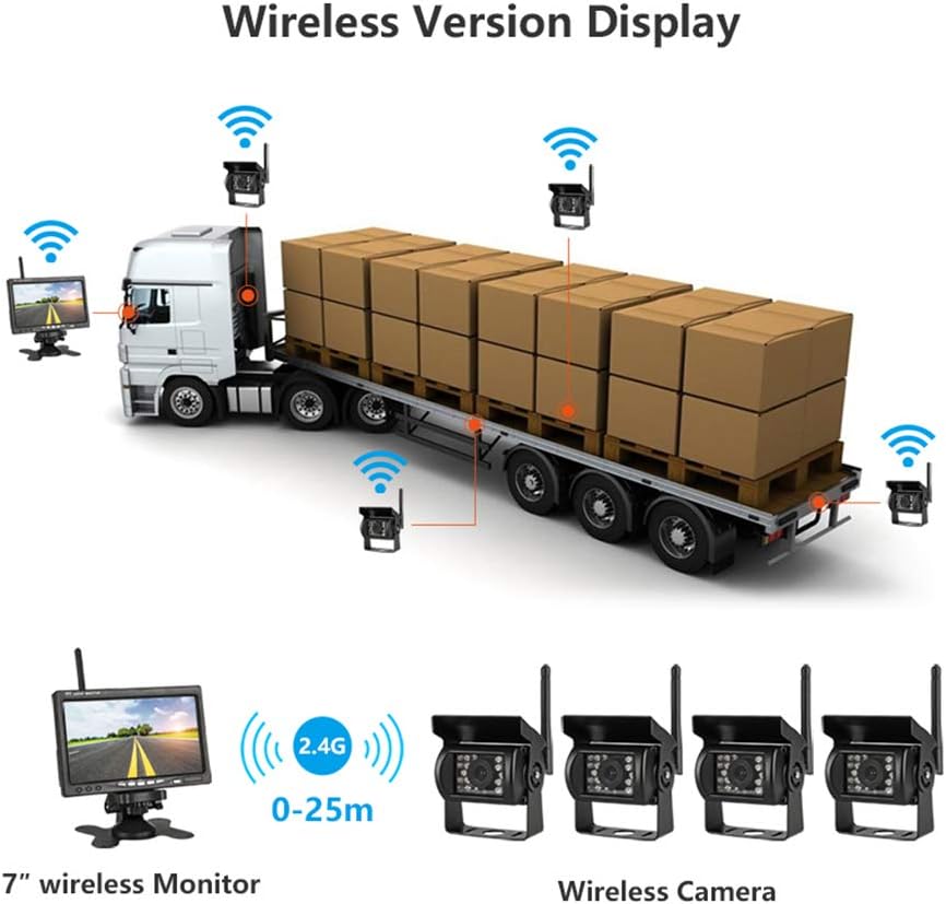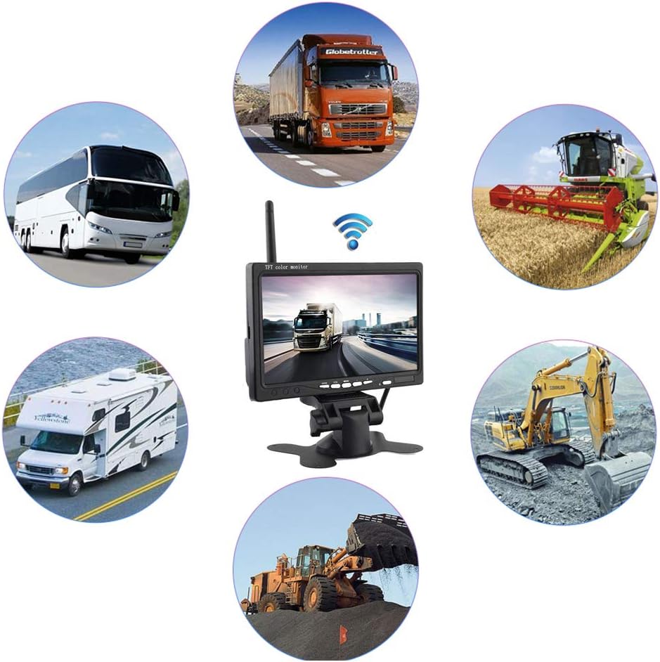 - Einfach zu installieren - Drahtlose Einparkhilfe; Der Monitor startet automatisch und zeigt synchron das Video der Rückfahrkamera an, wenn Sie Ihr Auto zurücksetzen oder bremsen.Verteidigen Ihre Reise Sicherheit, professionelle Lkw-Backup-Kamera-Kits und das Display.