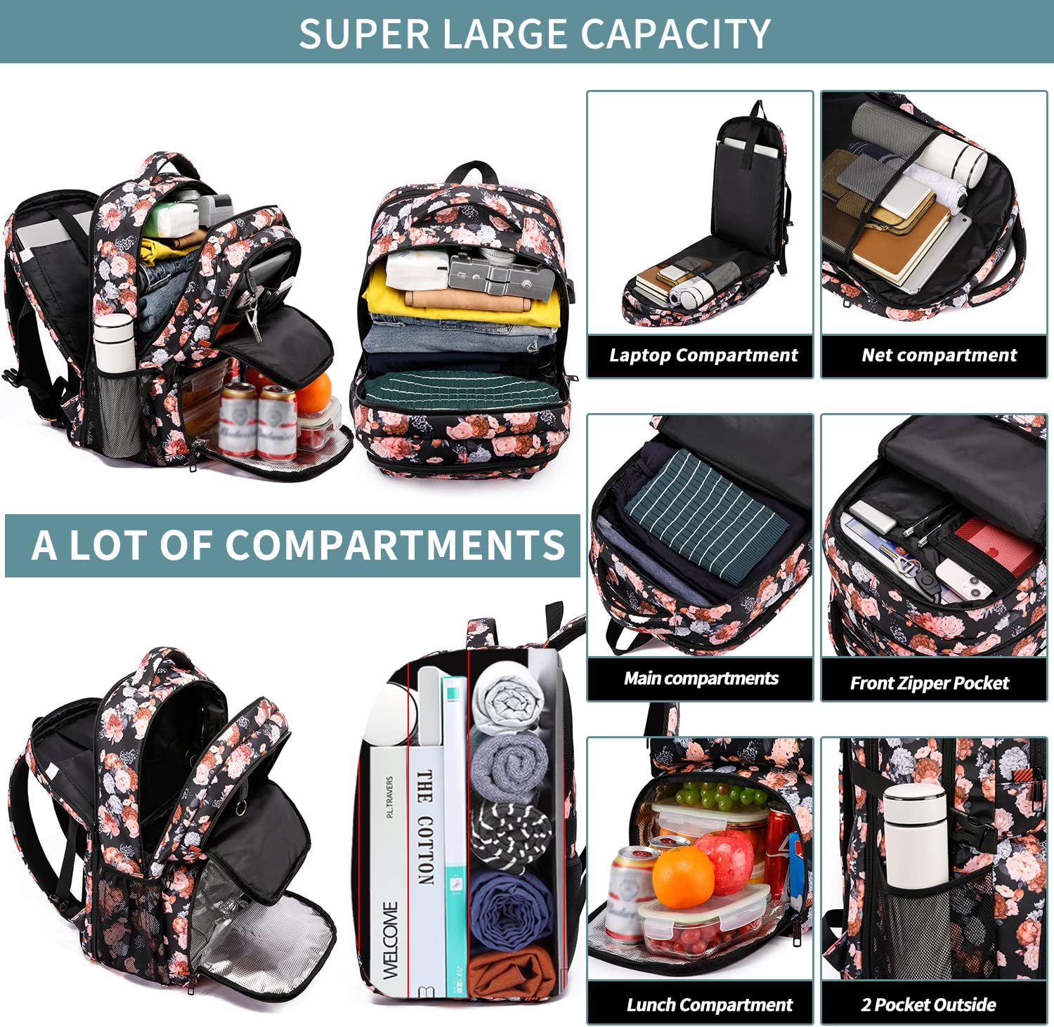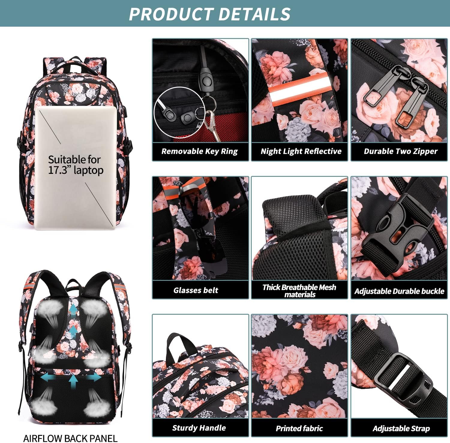 - GROSSE KAPAZITÄT & ORGANISIERT - Grosser Rucksack Damen besitzt 1 separates dickeres gepolstertes Laptopfach zum Aufbewahren eines 17-Zoll-Laptops. 3 Hauptfächer mit Doppelreissverschluss bieten Platz für 50 Liter Dinge, wie Schulmaterial,