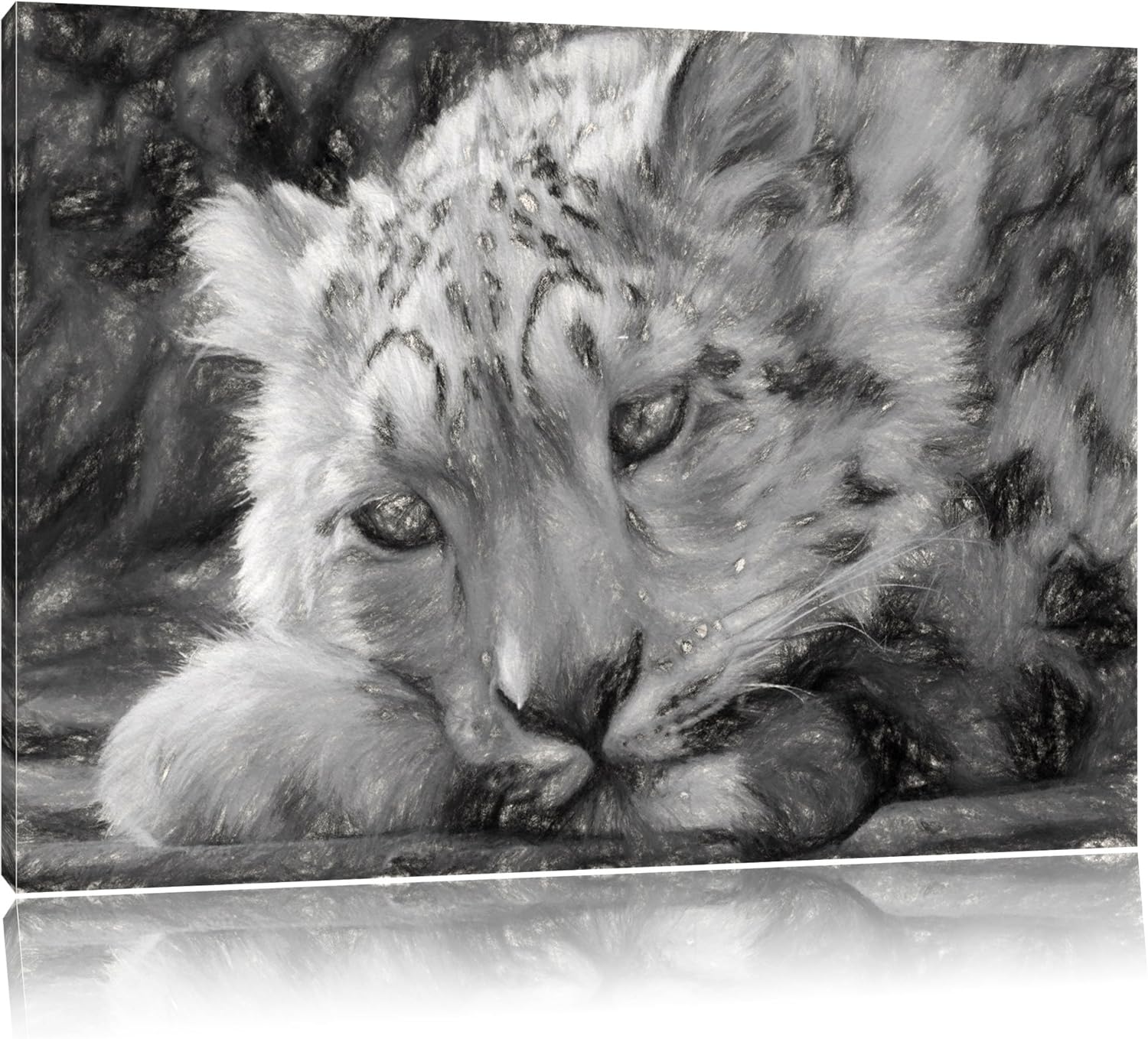 ruhender Schneeleopard Deluxe Format: 100x70 cm auf Leinwand, XXL riesige Bilder fertig gerahmt mit