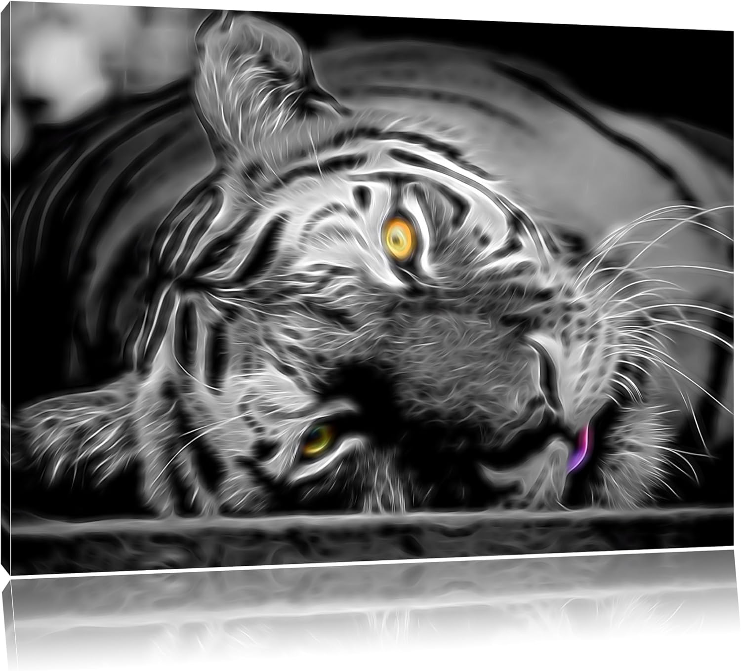 ruhender Tiger schwarz/weiss Deluxe Format: 100x70 cm auf Leinwand, XXL riesige Bilder fertig gerahm