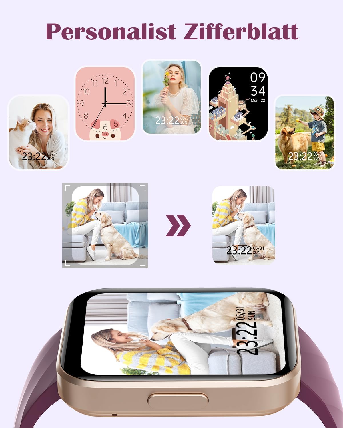 - 【Anrufannahme/Wählen und KI-Sprachtechnologie】Verwenden Sie die Smartwatch direkt mit Anruffunktion, um Anrufe über das eingebaute Mikrofon zu tätigen und anzunehmen. Bleiben Sie mit SMS/SNS Nachrichten in Verbindung und verpassen Sie keine