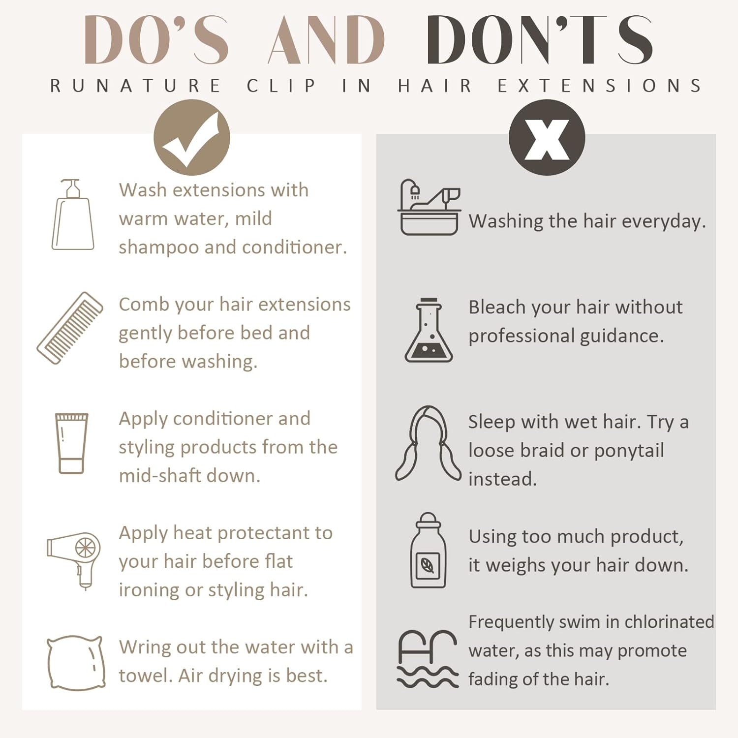 - Menschliches Haar: RUNATURE-Haarverlängerungen bestehen zu 100 % aus menschlichem Haar, das weder die Kopfhaut schädigt noch riecht und super weich und glatt ist, geeignet für Kinder und Frauen. Es wird nach ein paar Anwendungen nicht unordentlich wie